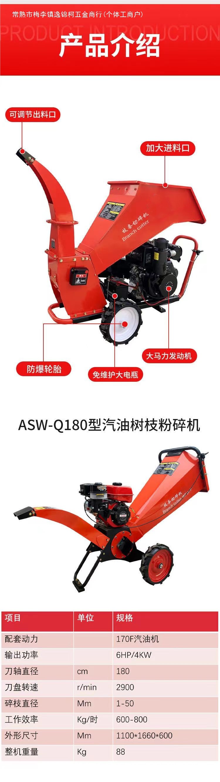 • 분쇄기 + 190형 가솔린 엔진(전기 시동 모델)