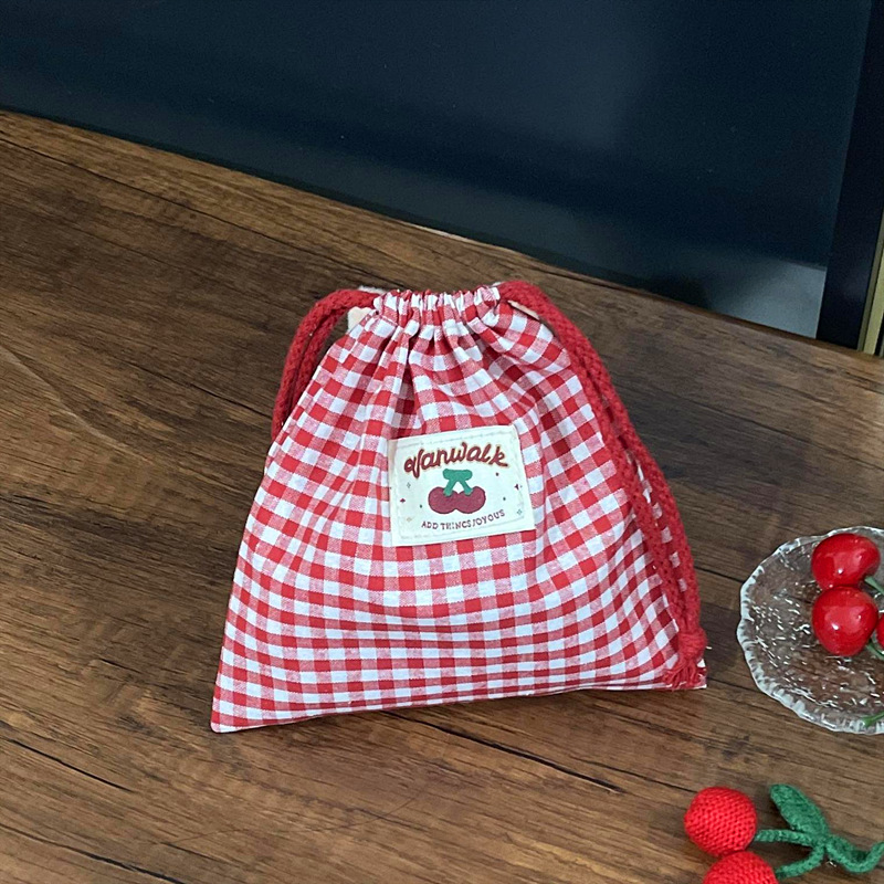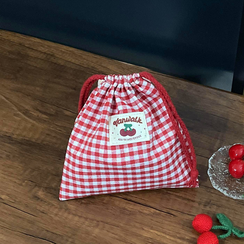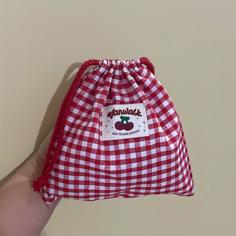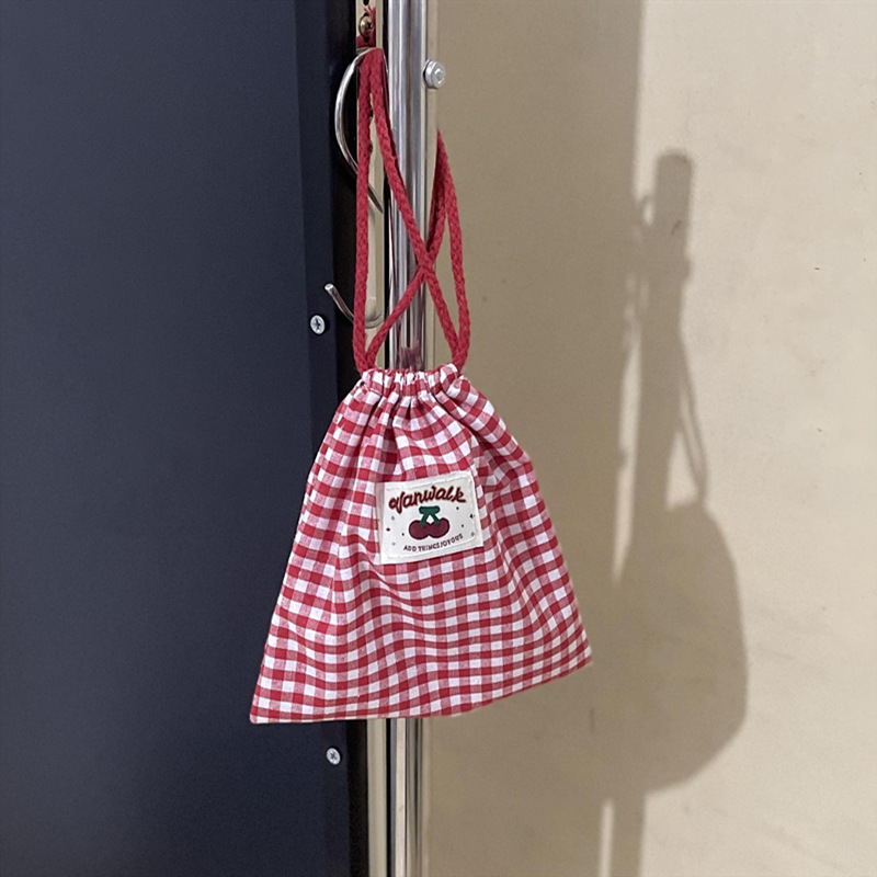 • 붉은 격자 무늬 조임끈 포켓