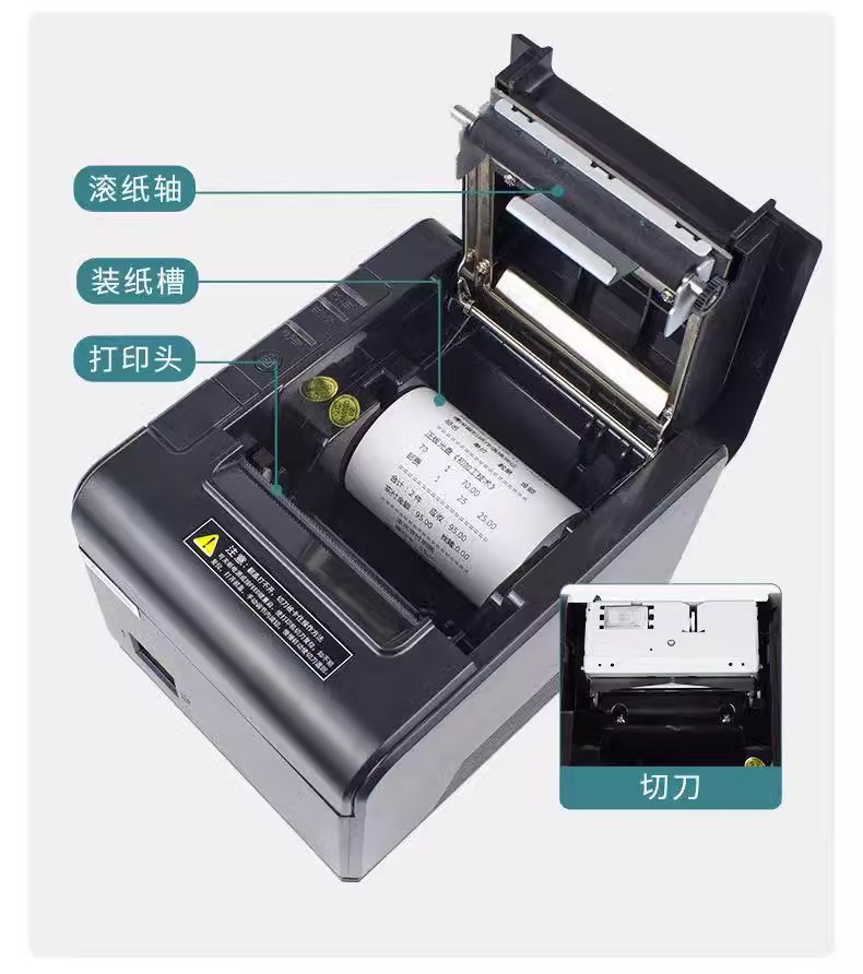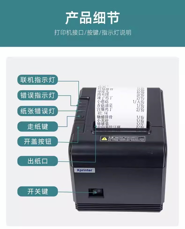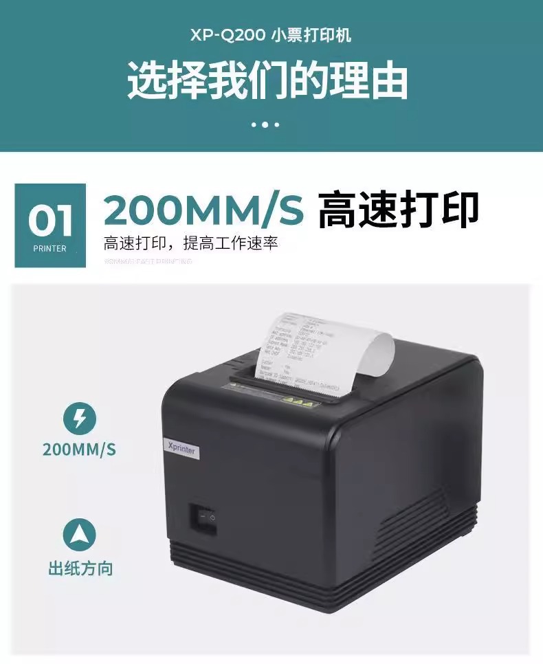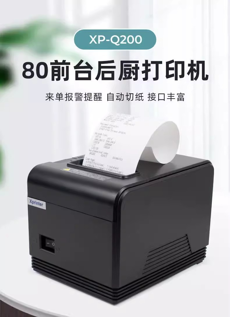 Xinye XP-Q200II 열 작은 빌 프린터 네트워크 포트 병렬 포트 슈퍼마켓 프론트 데스크 현금 등록 영수증 기계 후면 주방