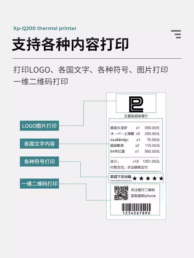 Xinye XP-Q200II 열 작은 빌 프린터 네트워크 포트 병렬 포트 슈퍼마켓 프론트 데스크 현금 등록 영수증 기계 후면 주방스토어 가기