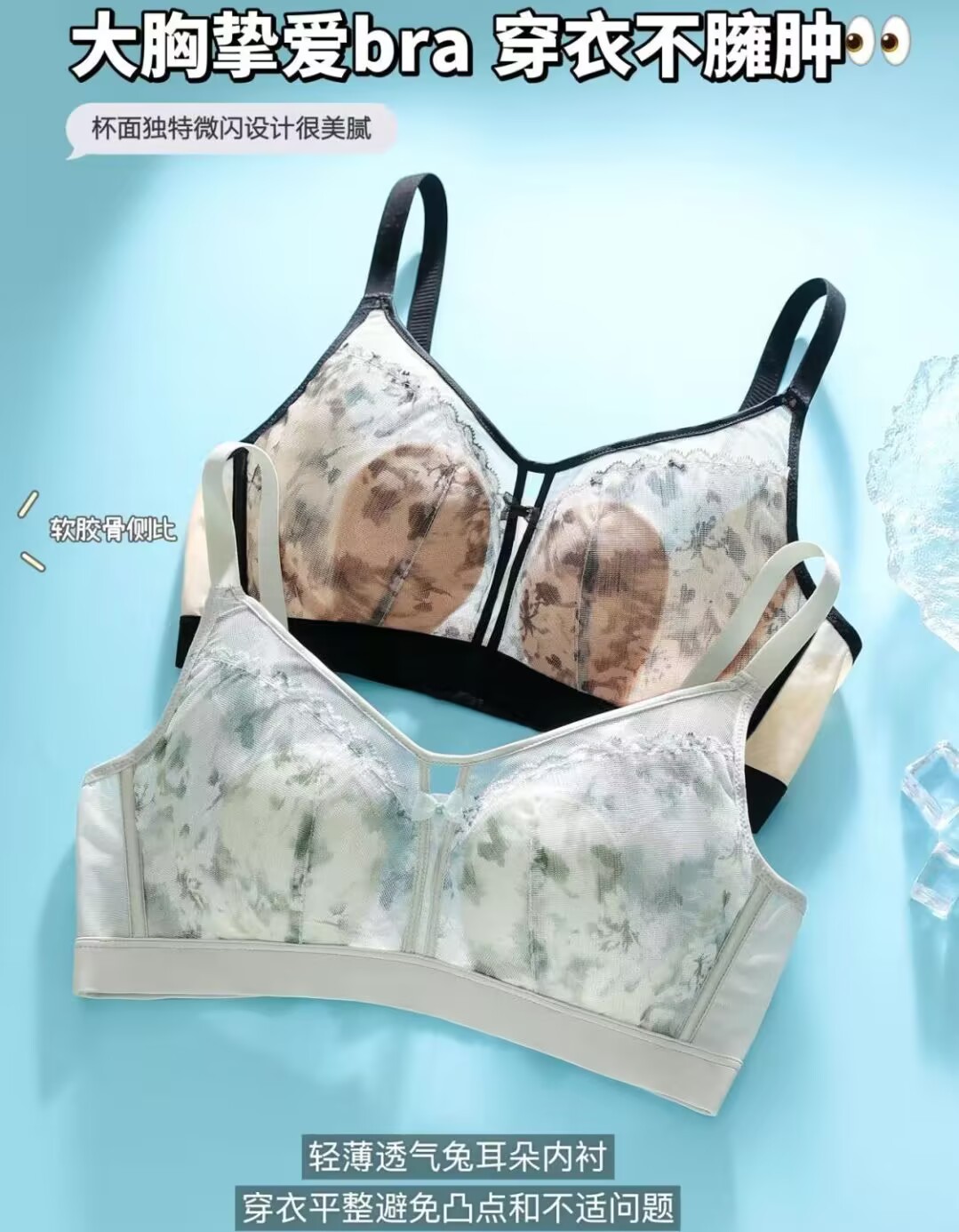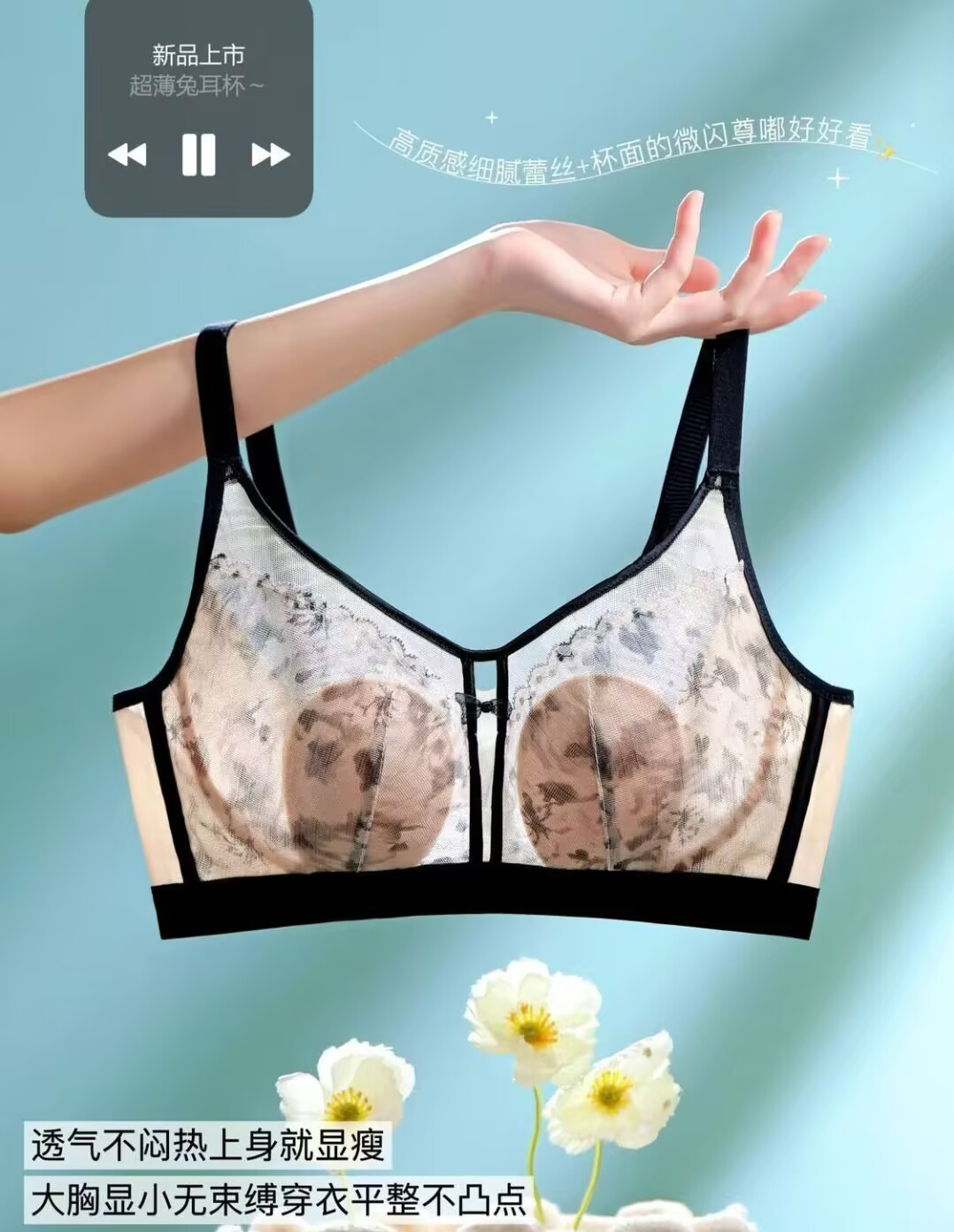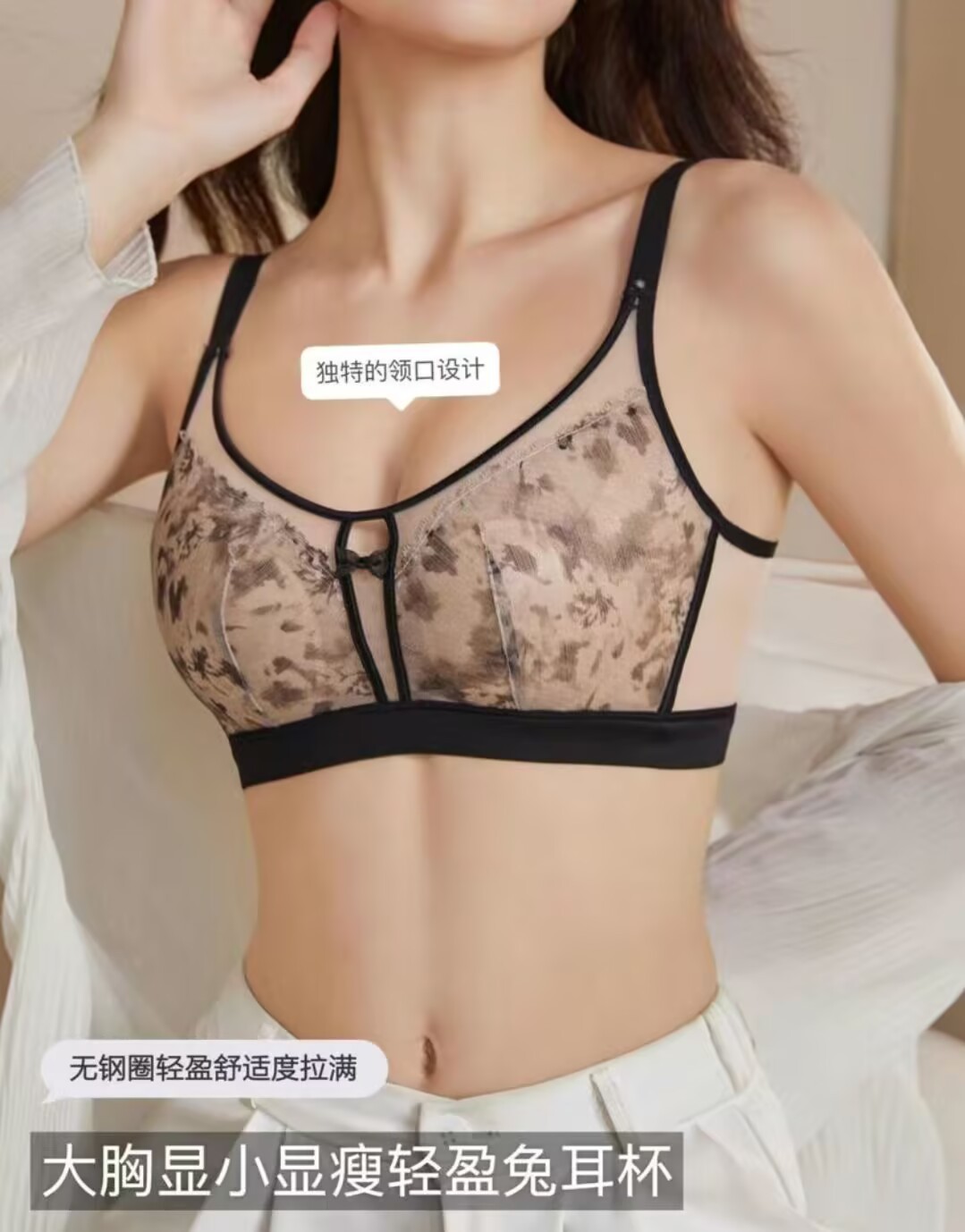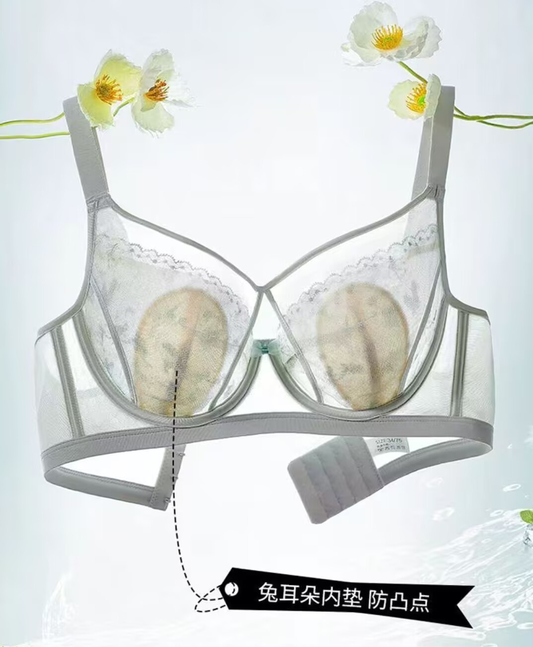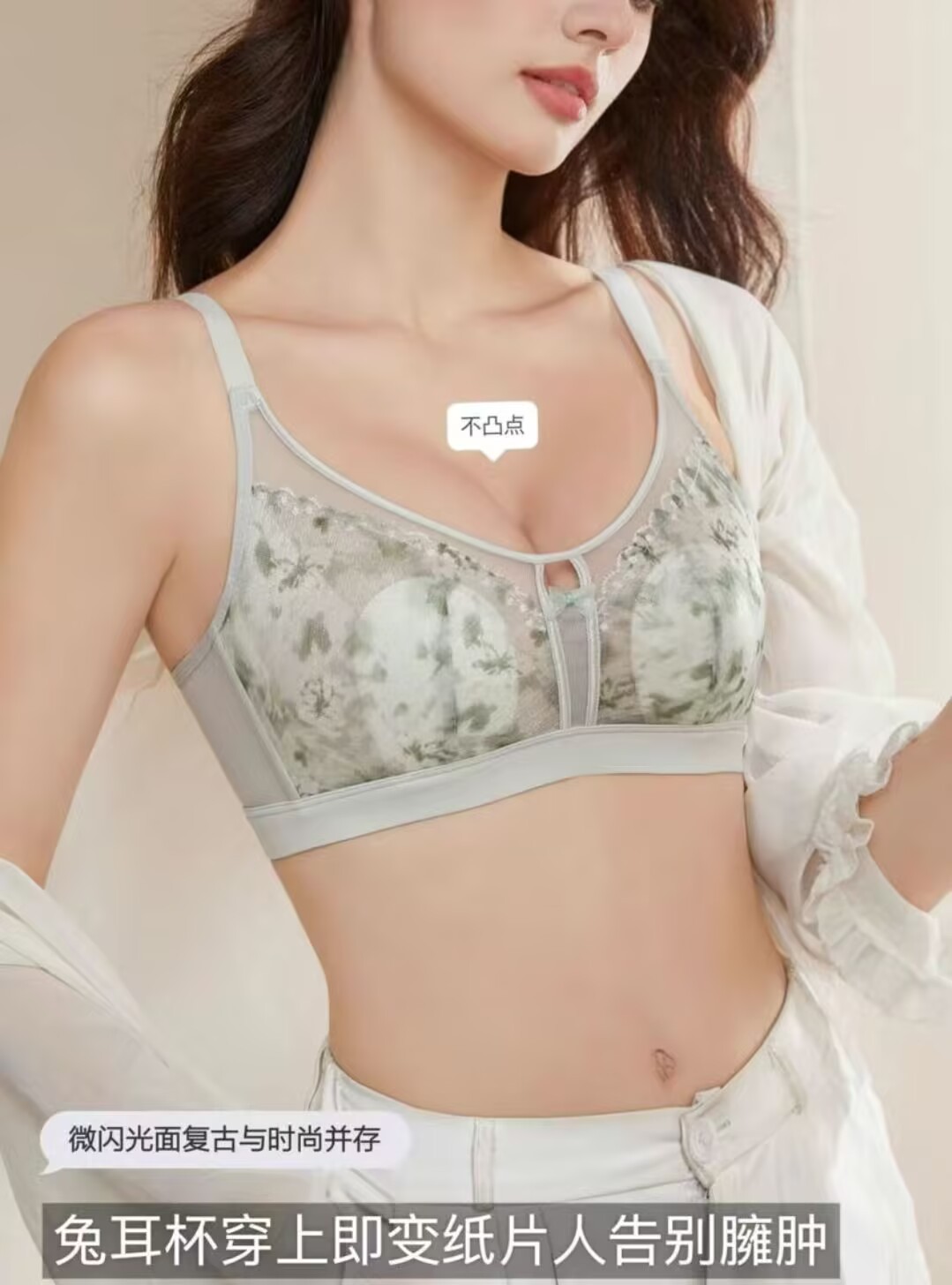 추적없는 반지가없는 레이스 토끼 귀 속옷 여성의 작은 가슴 푸시 업 보조 유방 풀업 방첩 브래지어