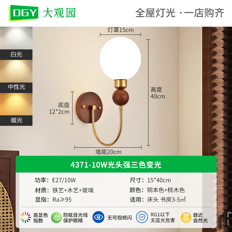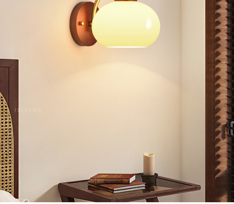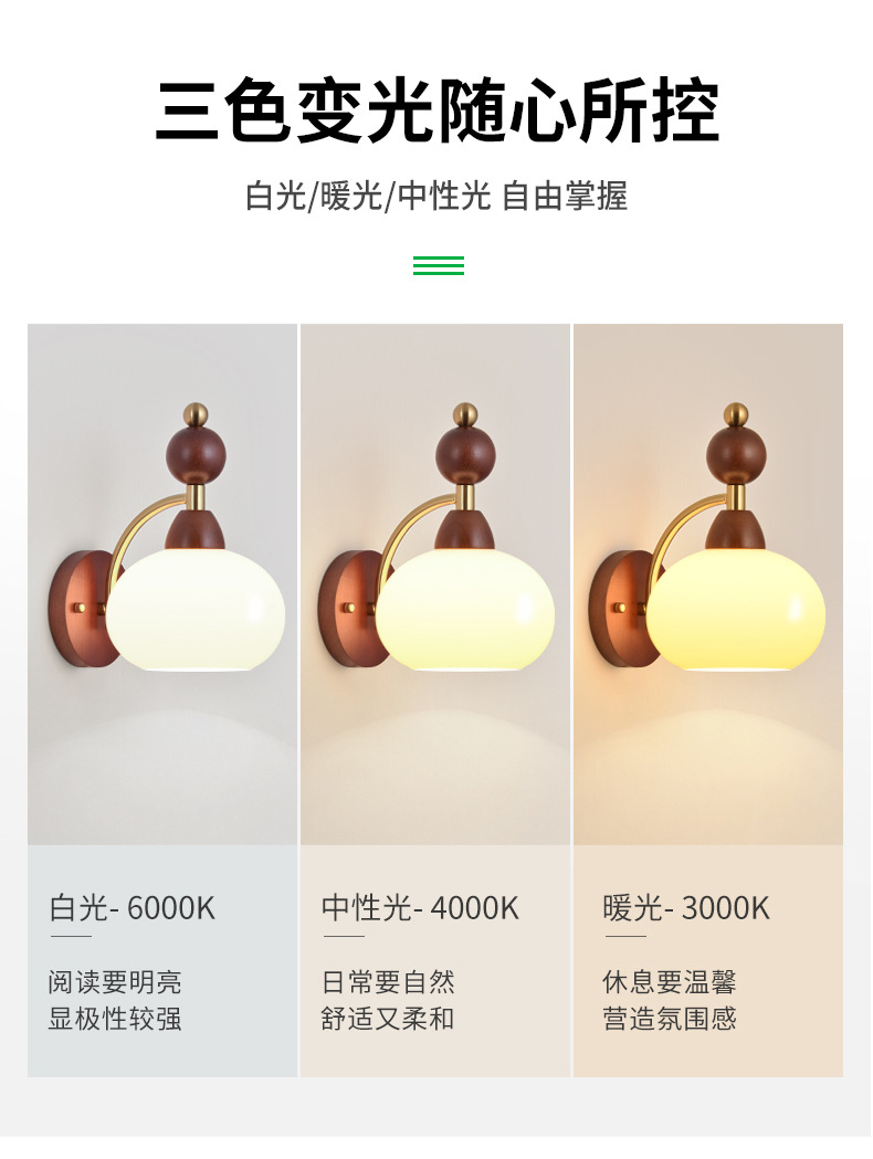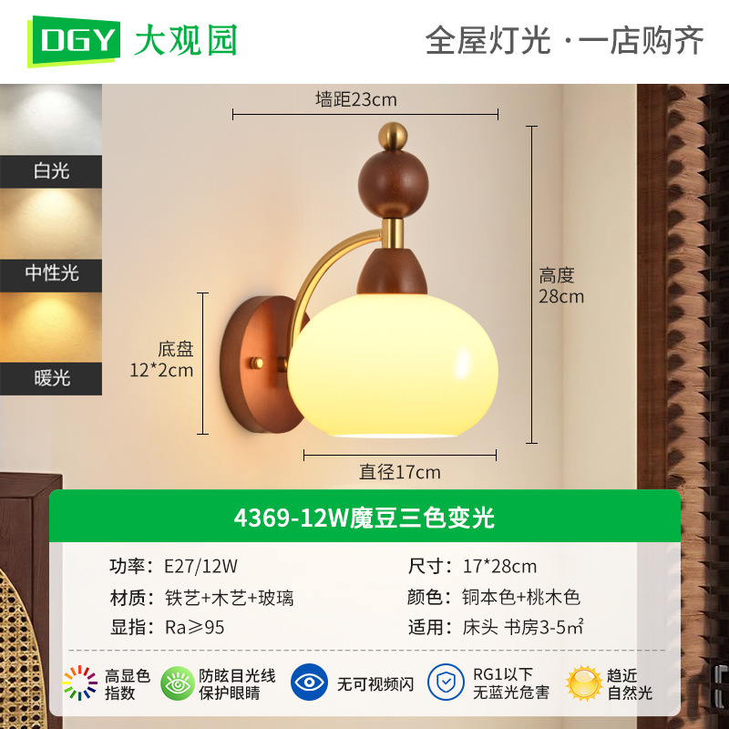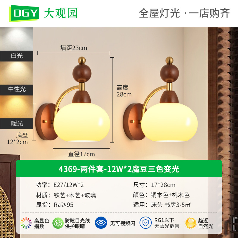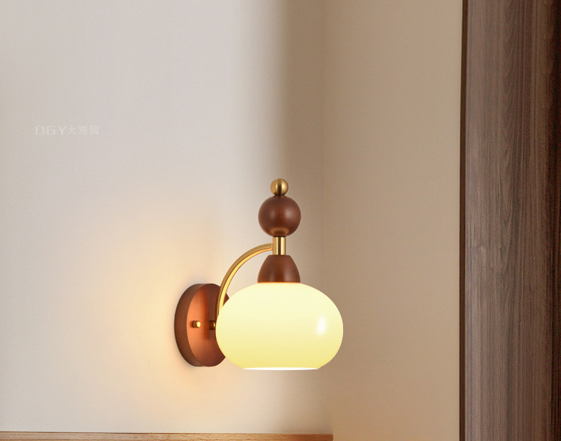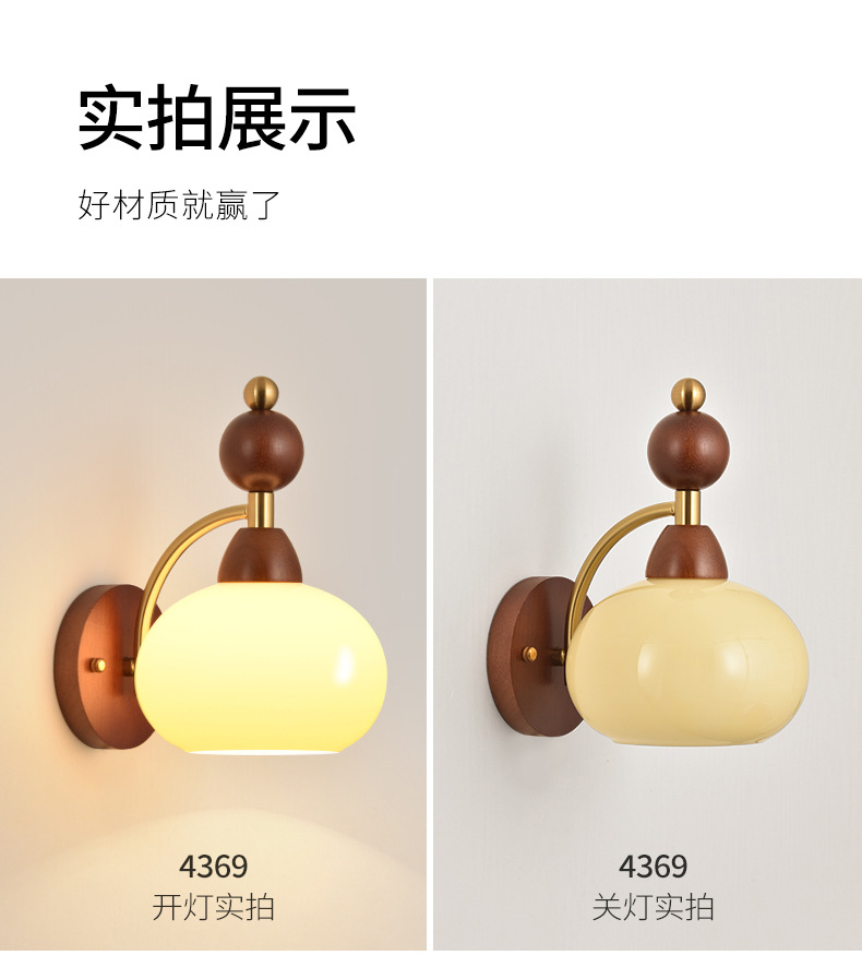 [엄밀히 선택] 벽 램프 침실 침대 옆 램프 중세 로그 간단한 호두 색 단단한 나무 통행 벽 계단 램프스토어 가기