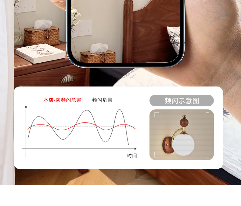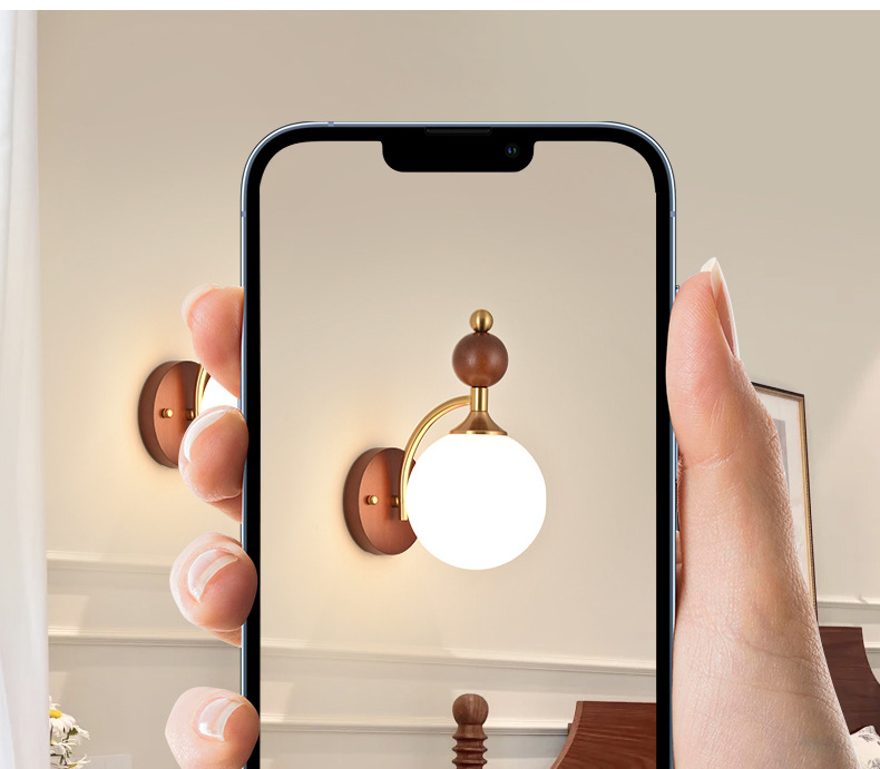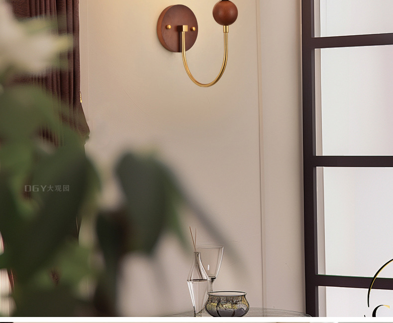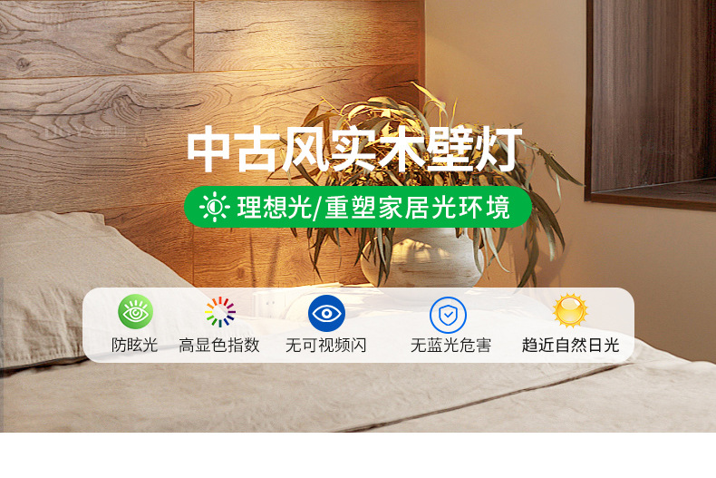 [엄밀히 선택] 벽 램프 침실 침대 옆 램프 중세 로그 간단한 호두 색 단단한 나무 통행 벽 계단 램프