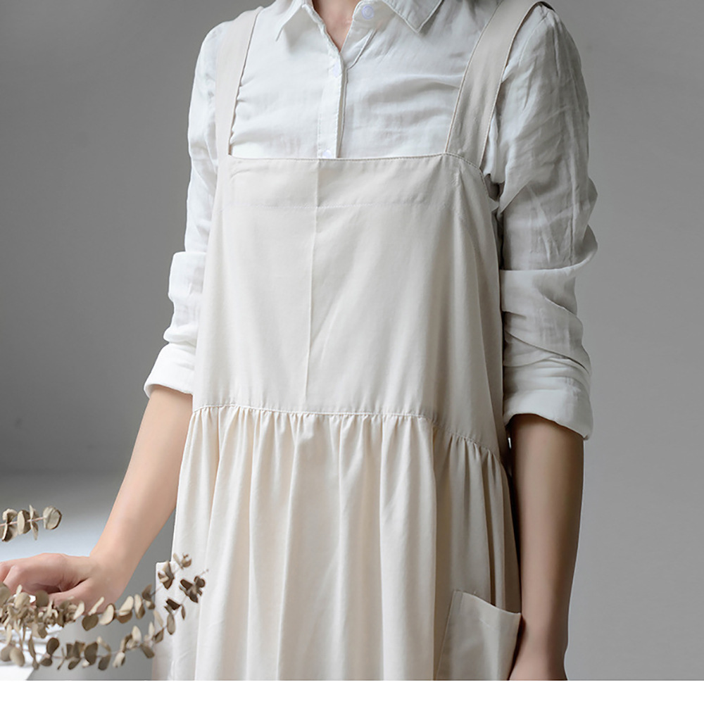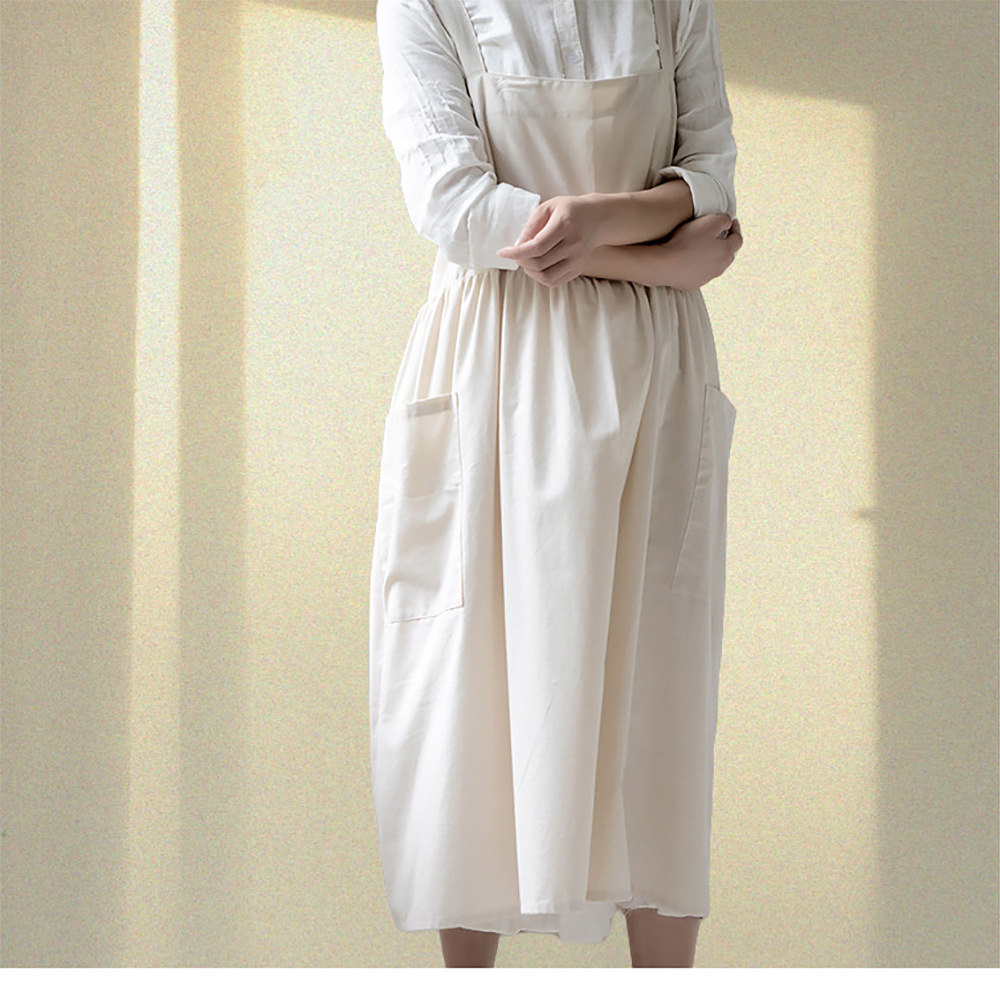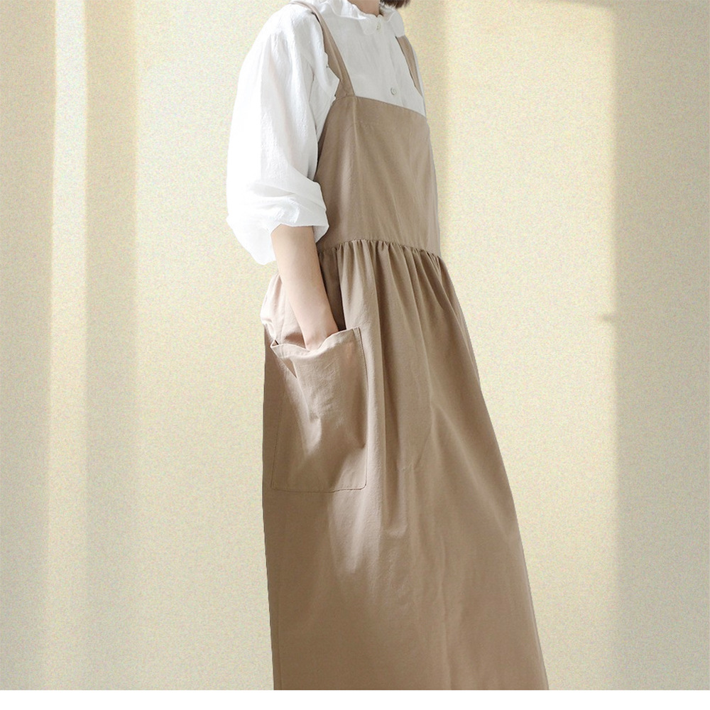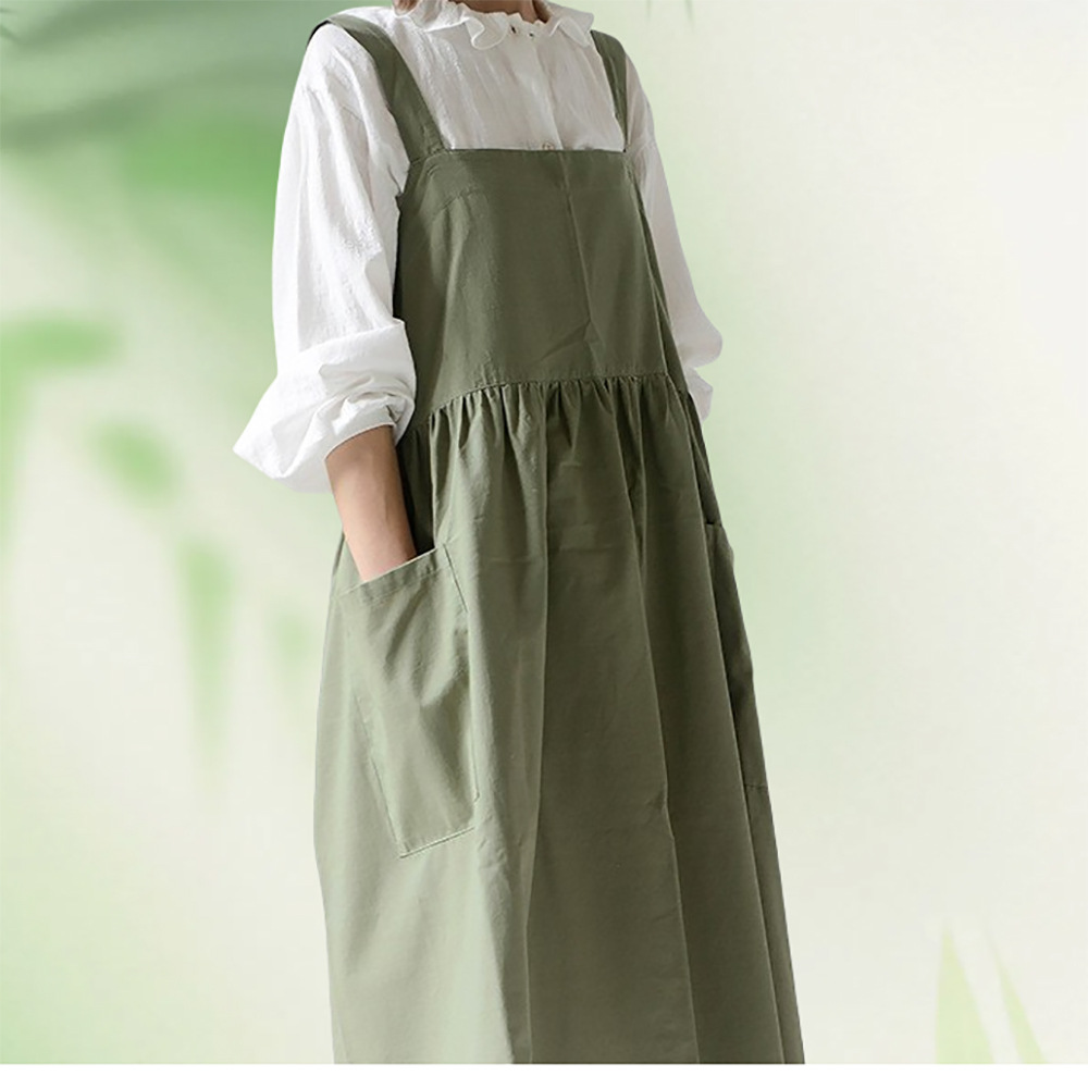 맞춤형 로고 여성 주방 방오 플러스 사이즈 유화 원피스 확장 된 작업복 커피 숍 우유 차 웨이터스토어 가기