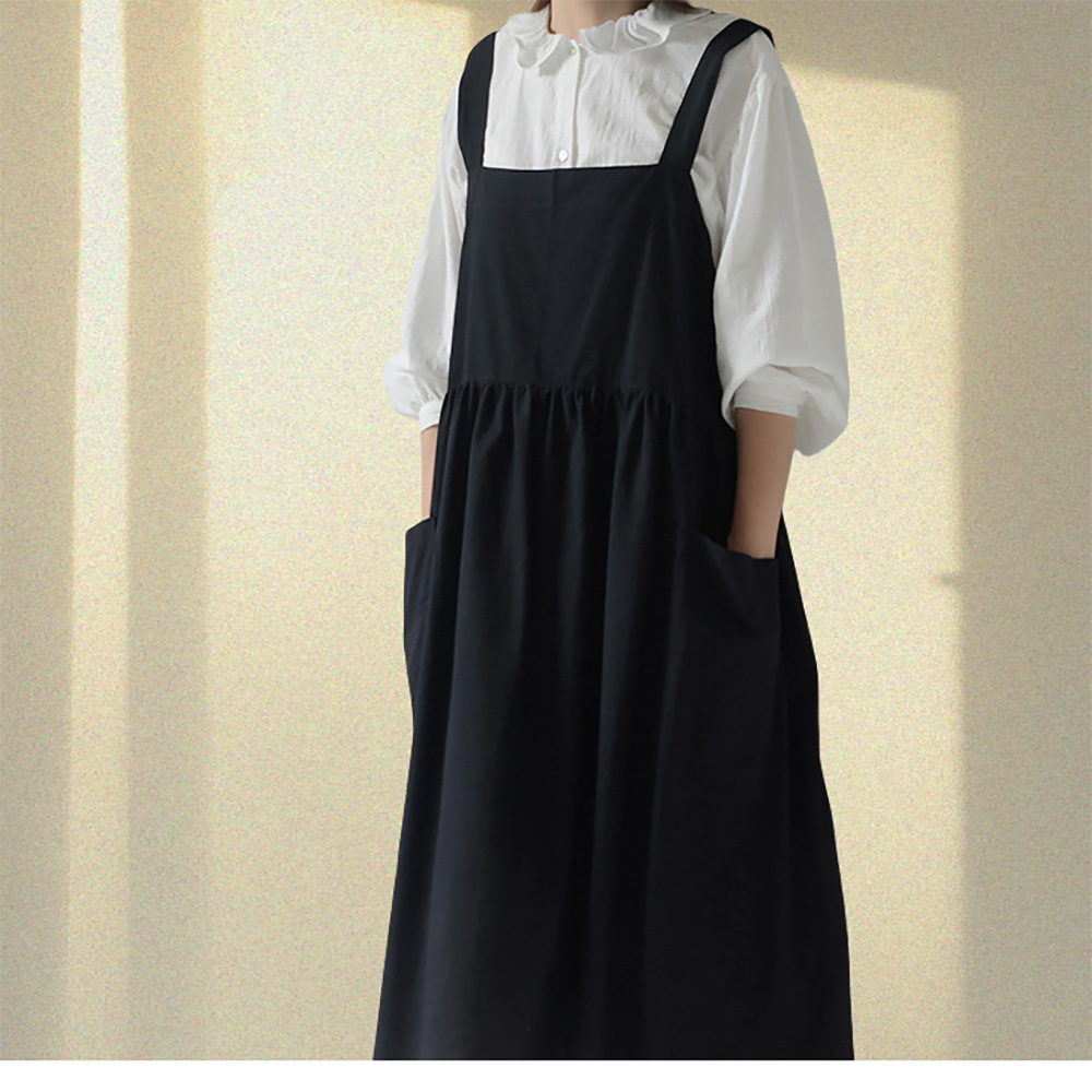 맞춤형 로고 여성 주방 방오 플러스 사이즈 유화 원피스 확장 된 작업복 커피 숍 우유 차 웨이터