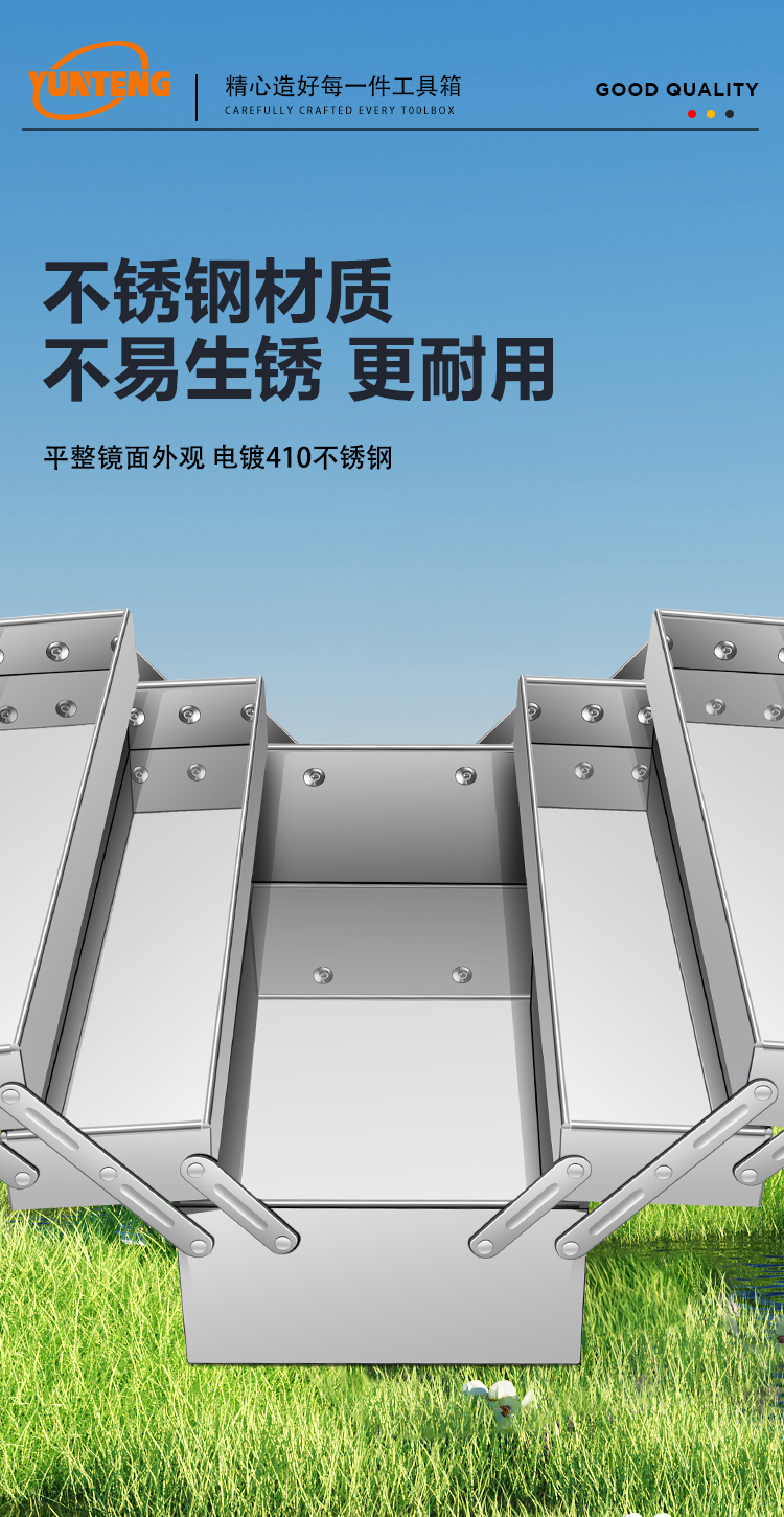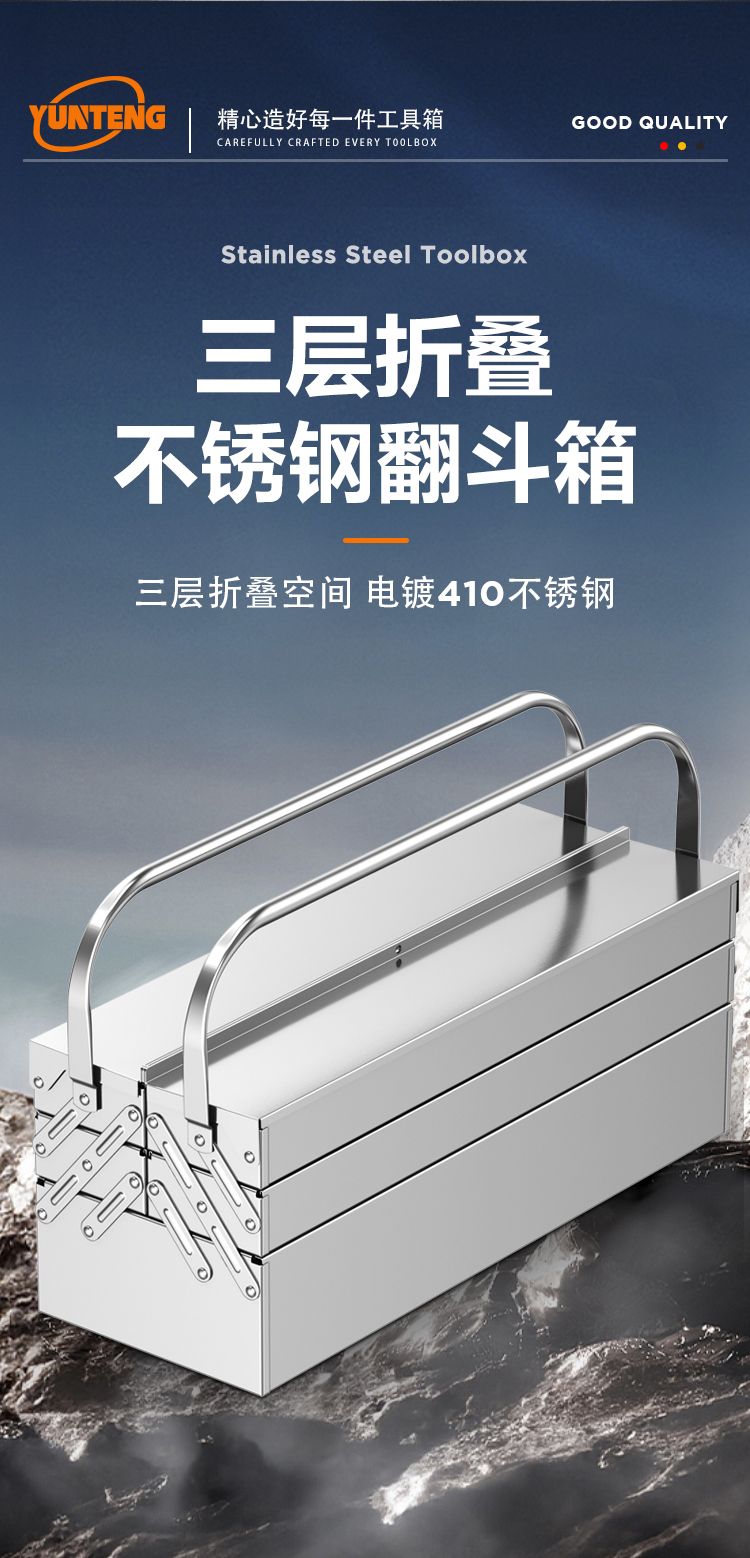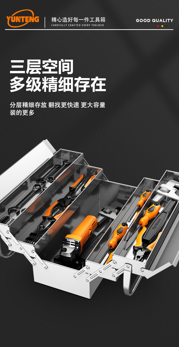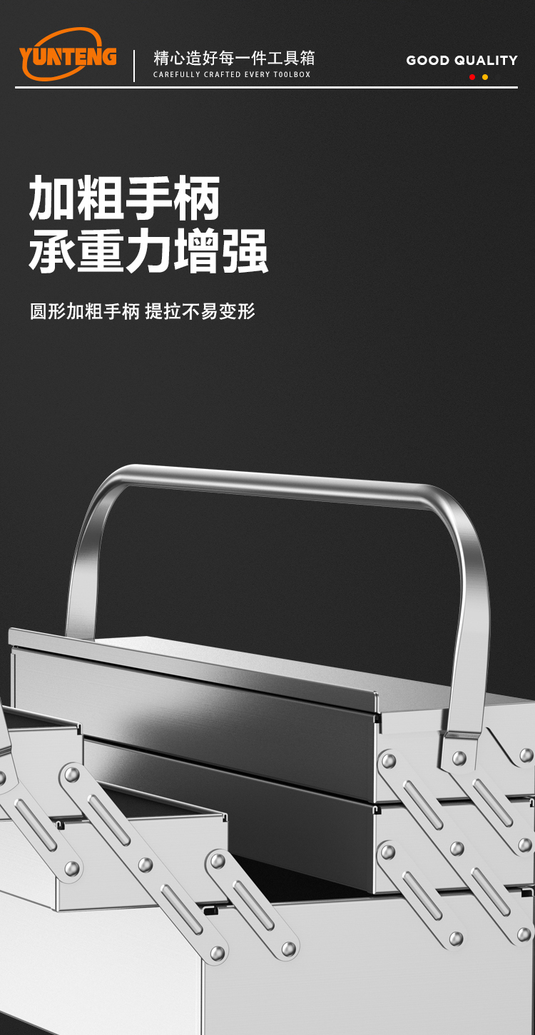 도구 상자 스테인레스 스틸 가정용 다기능 하드웨어 산업 저장 상자 3 층 접이식 자동차 대형 저장 상자
