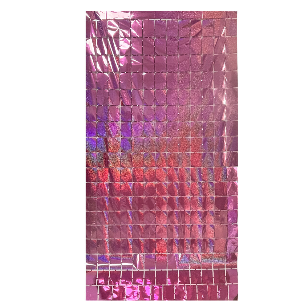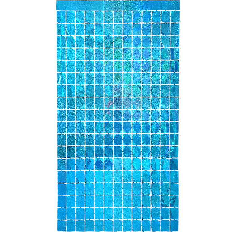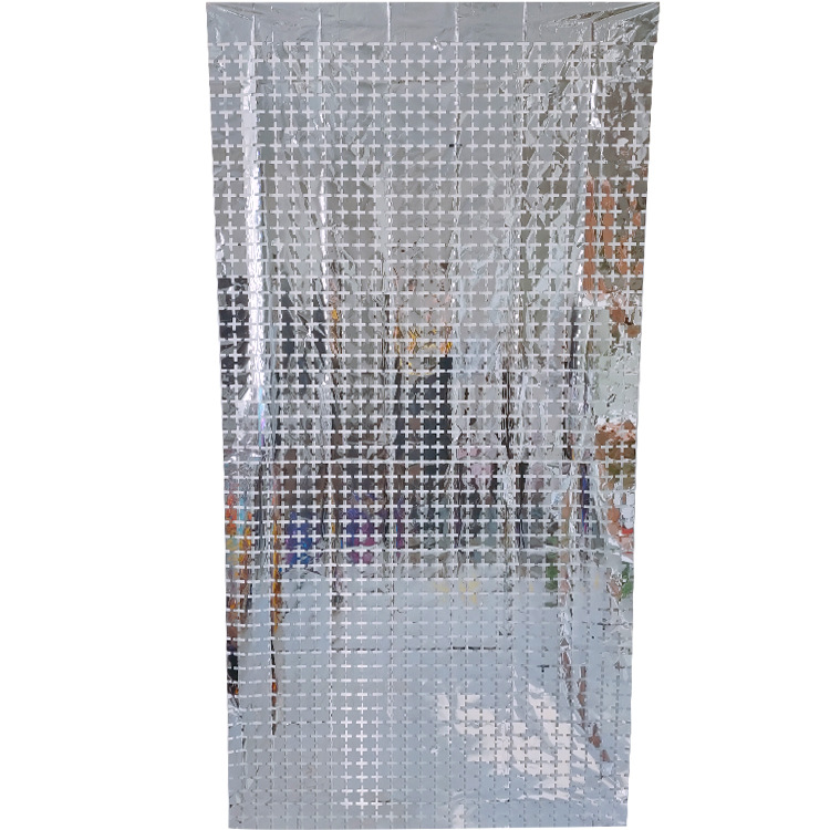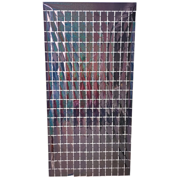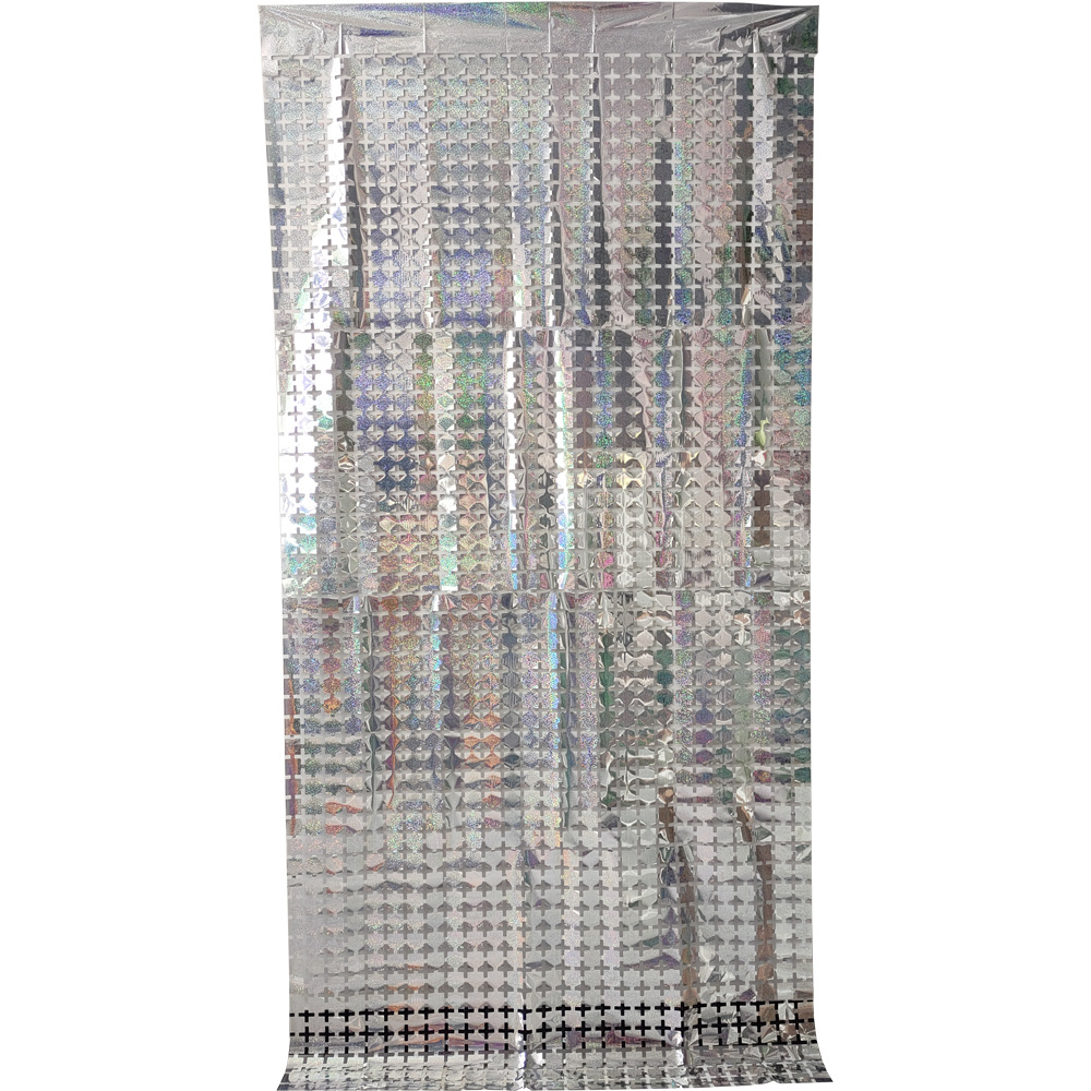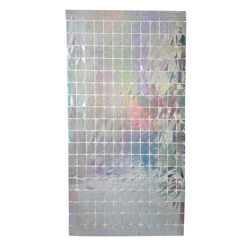 레이저 장식 금속 알루미늄 호일 사각 비 실크 커튼 파티 생일 결혼식 배경 크기 사각 비 실크 커튼스토어 가기