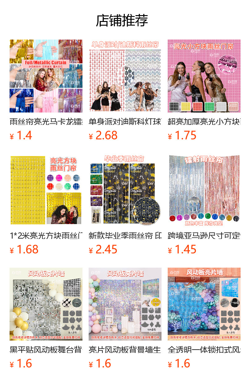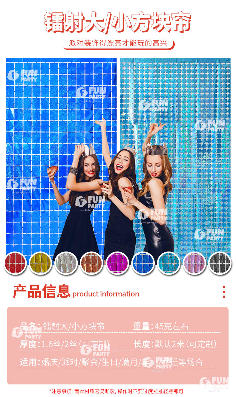 雨丝帘,镭射雨丝帘,亮光雨丝帘,亮光流苏,生日场景布置用品,生日装饰,派对布置,派对用品,派对墙上装饰,方块帘,方块雨丝帘