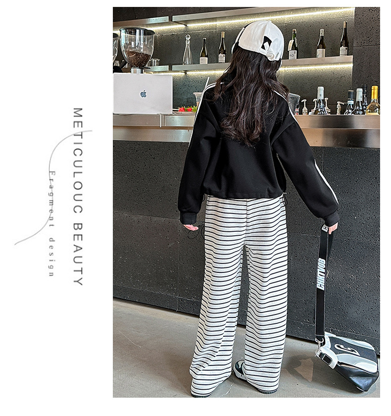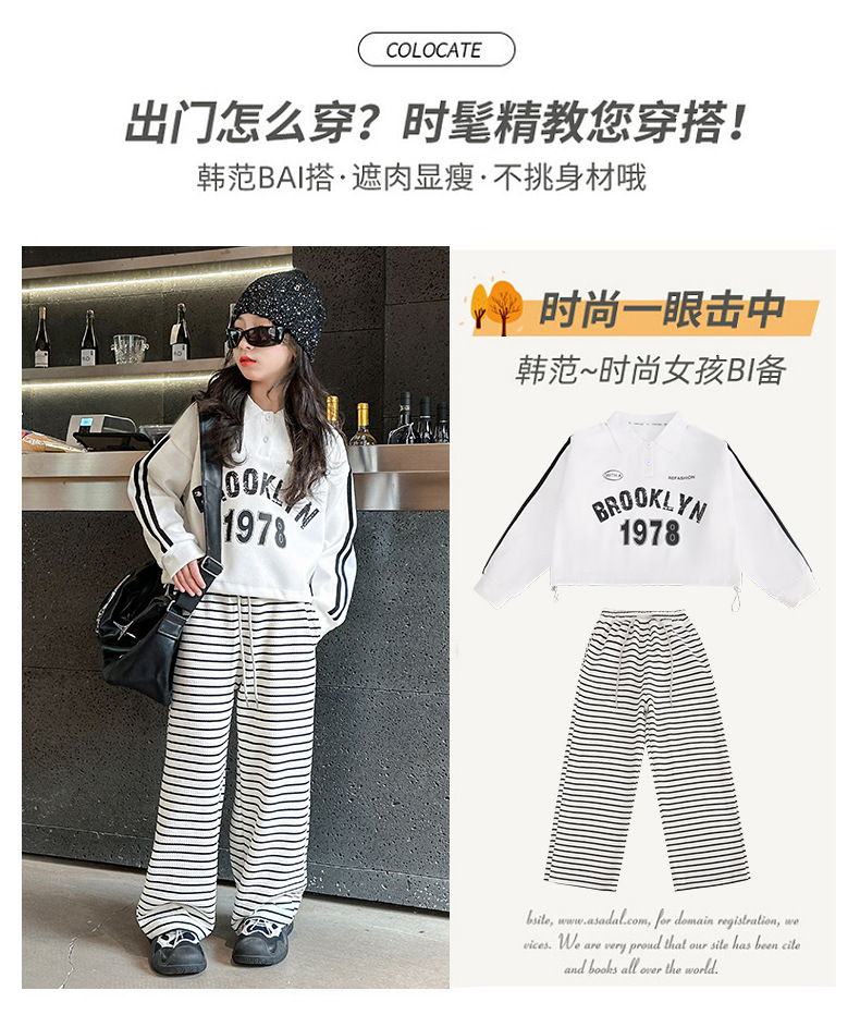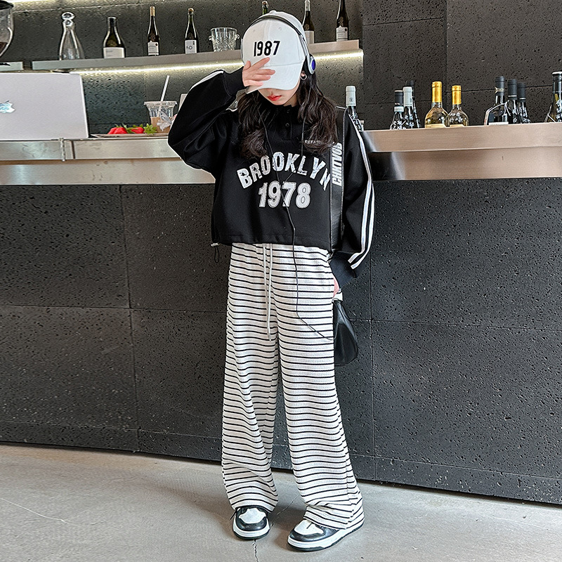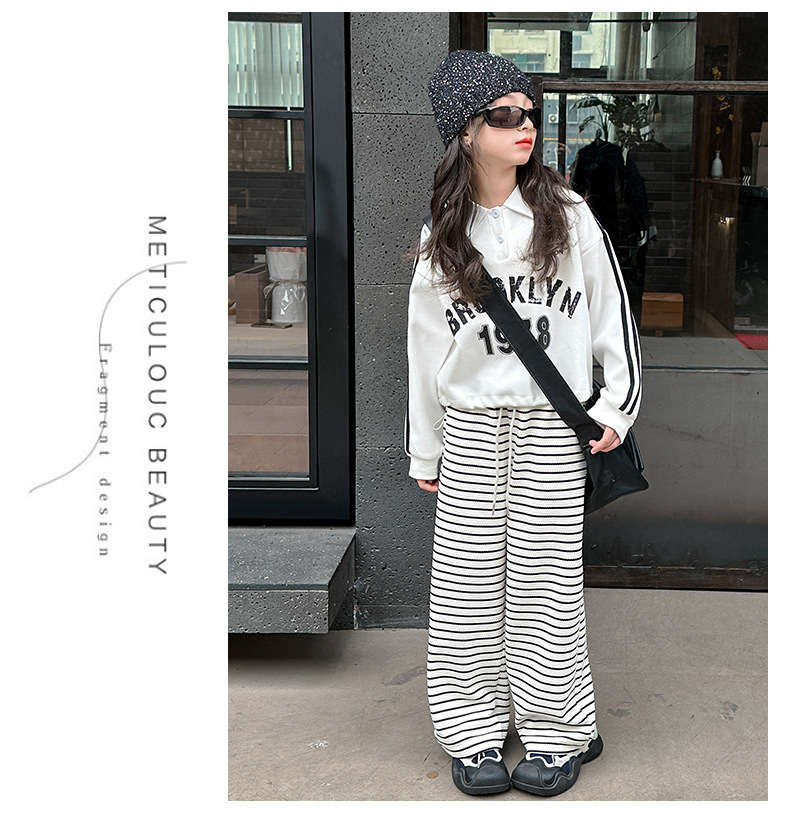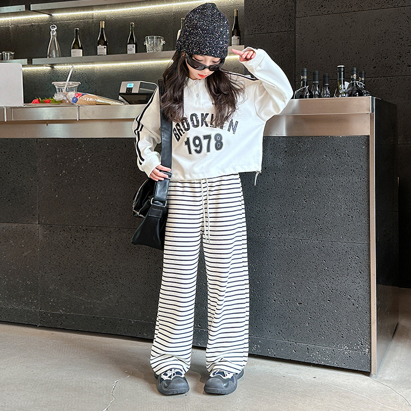 2025 봄 새 소녀 스트라이프 세트 중 큰 아이 한국식 편지 인쇄 패션 캐주얼 투피스 세트스토어 가기