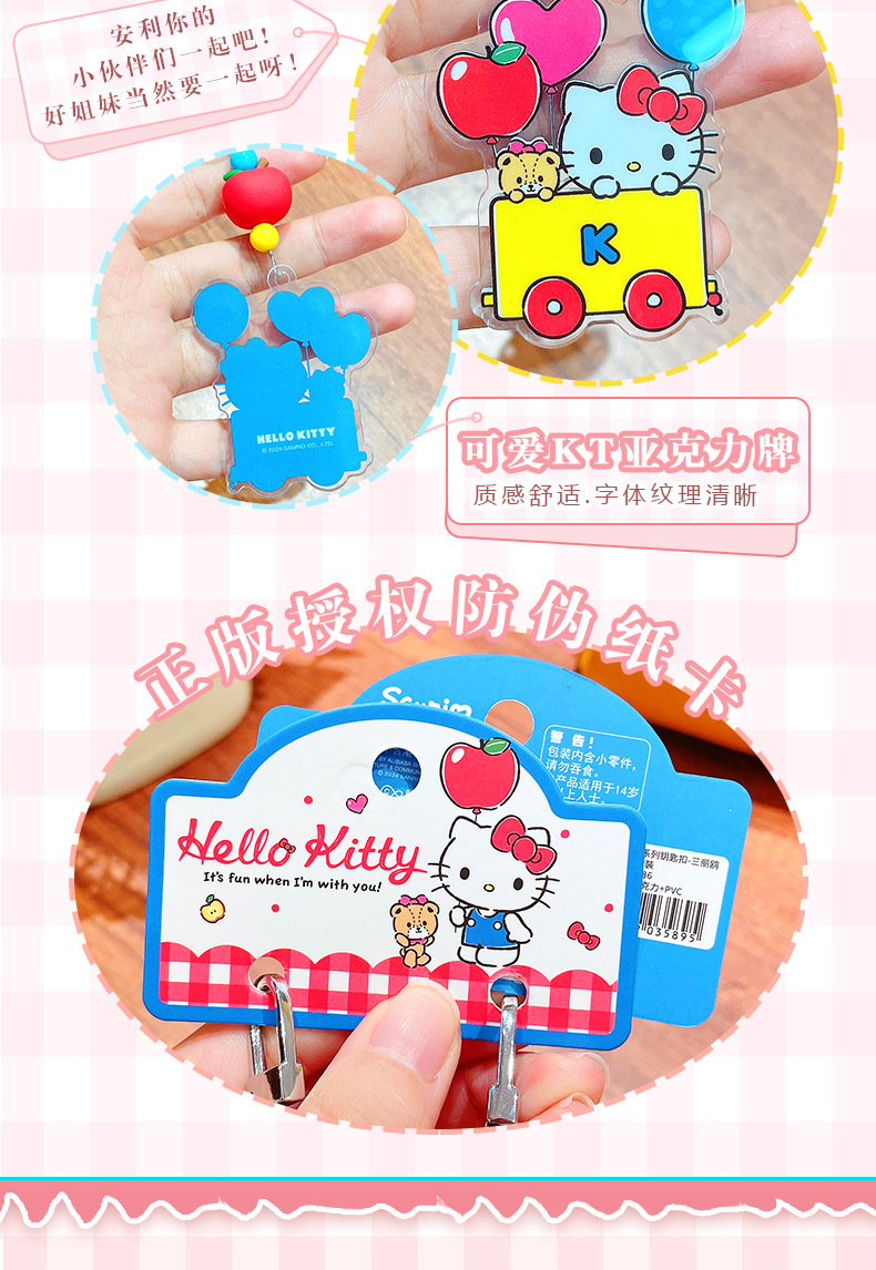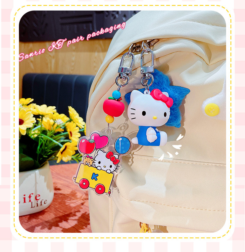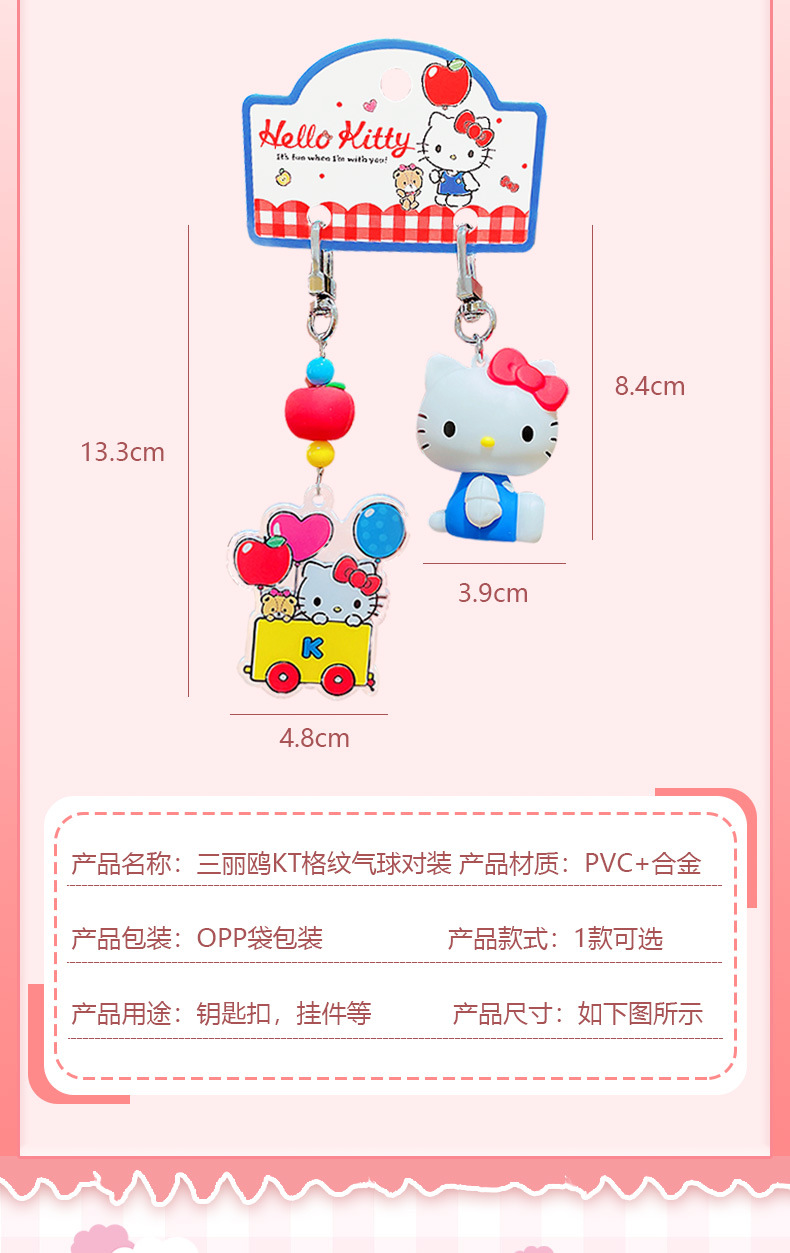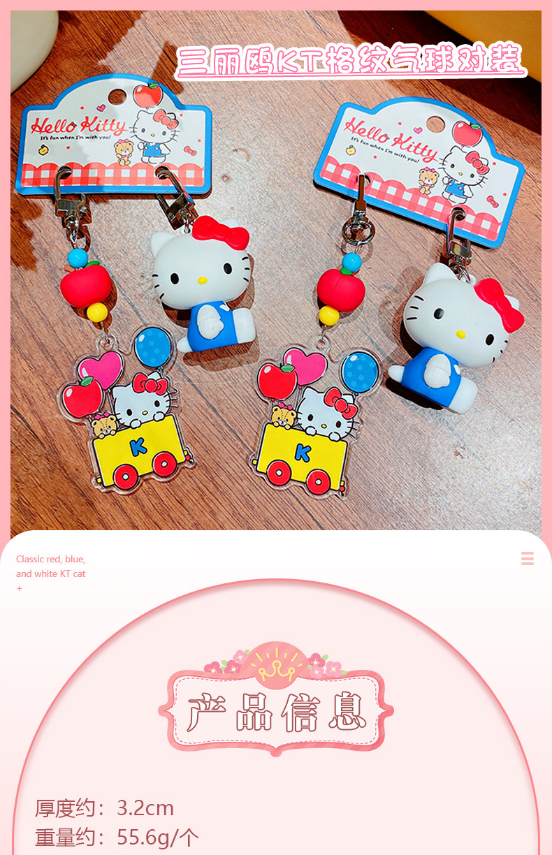 정품 귀여운 산리오 KT 고양이 격자 무늬 풍선 쌍 키 체인 커플 스쿨백 펜던트 작은 선물 키 체인스토어 가기