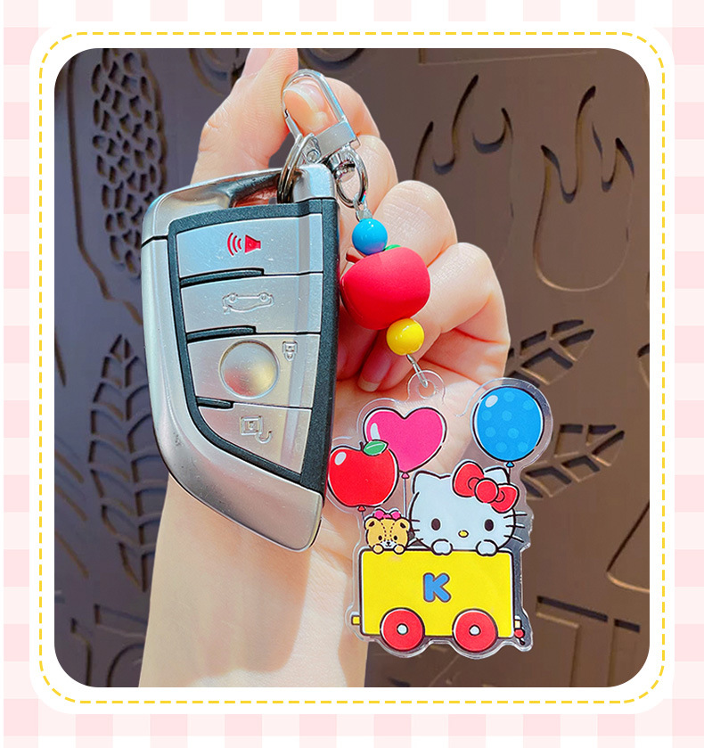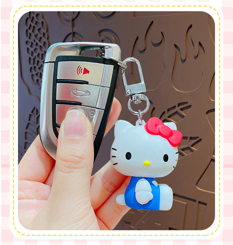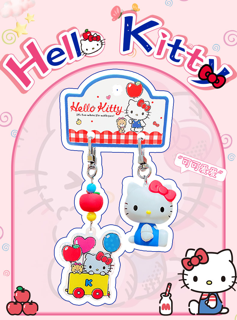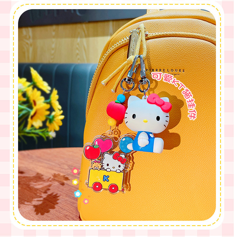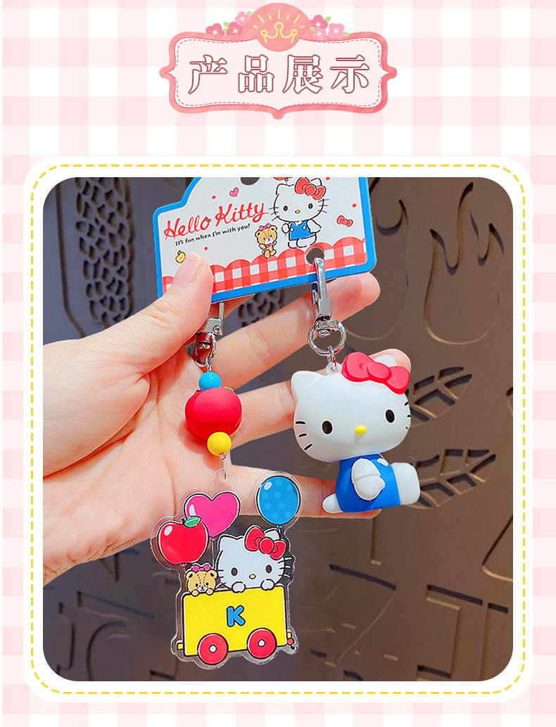 정품 귀여운 산리오 KT 고양이 격자 무늬 풍선 쌍 키 체인 커플 스쿨백 펜던트 작은 선물 키 체인스토어 가기