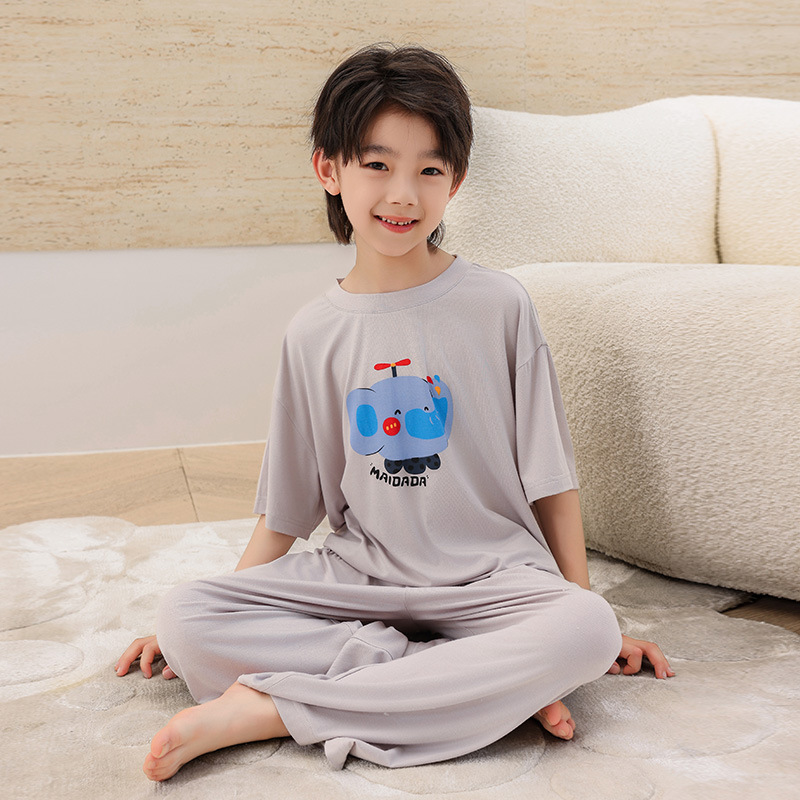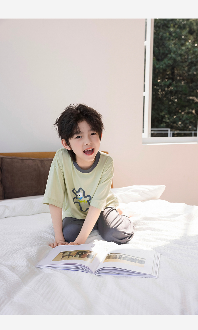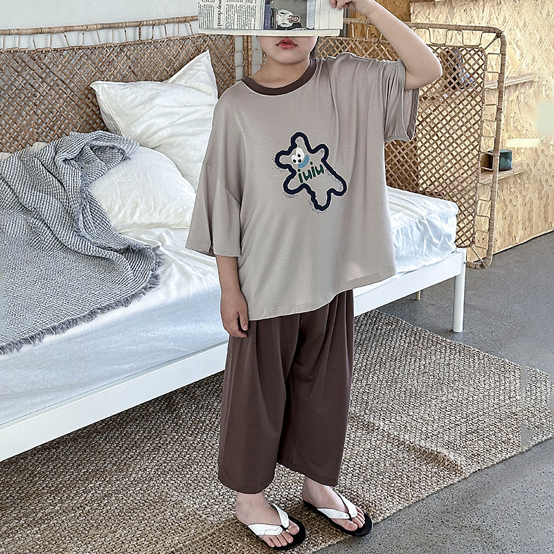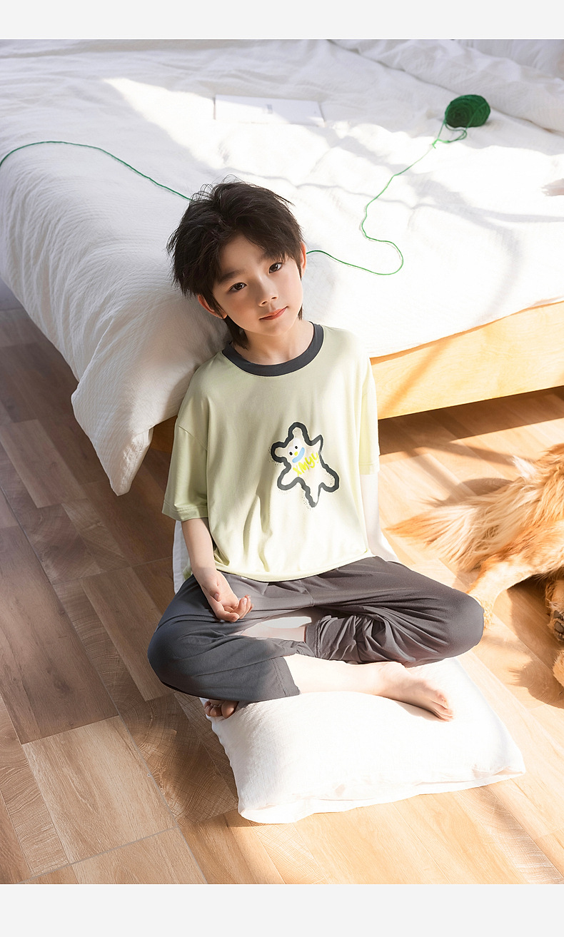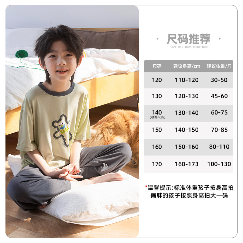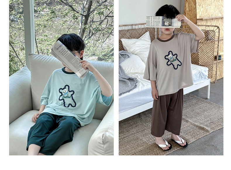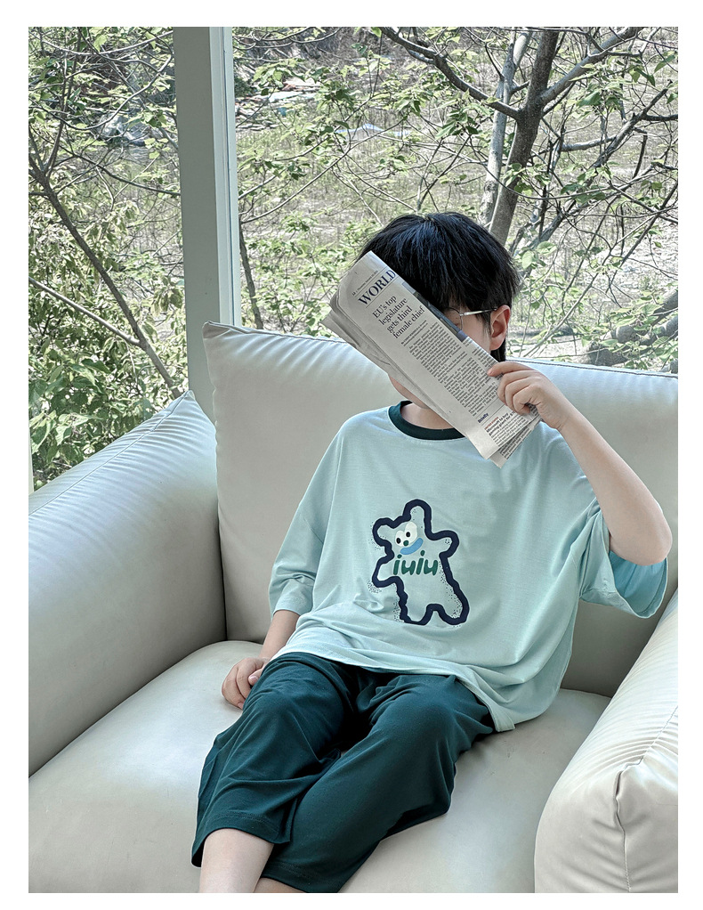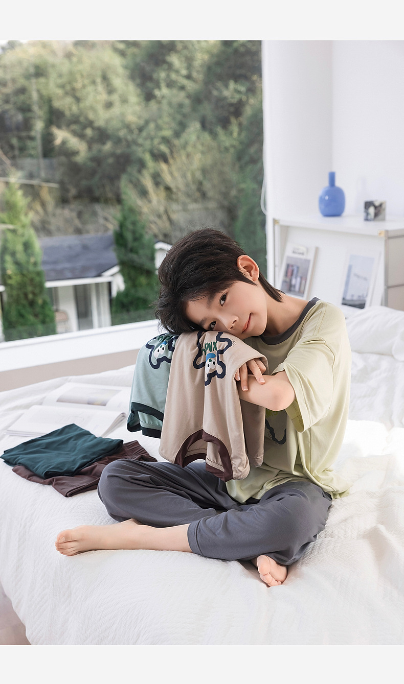팬더 Yuanyuan 2025 새로운 모달 어린이 파자마 여름 옷 소년 집 옷 세트 여름 에어컨 옷
