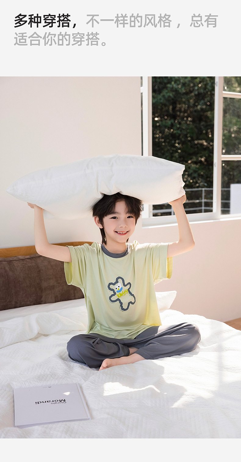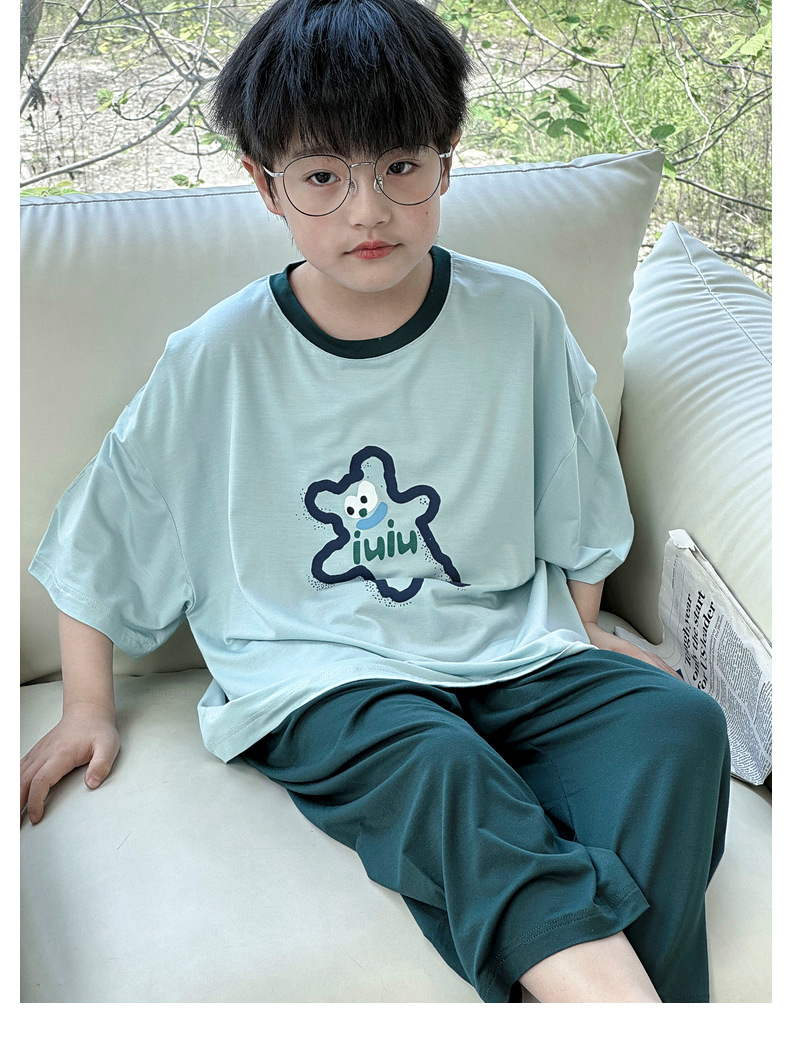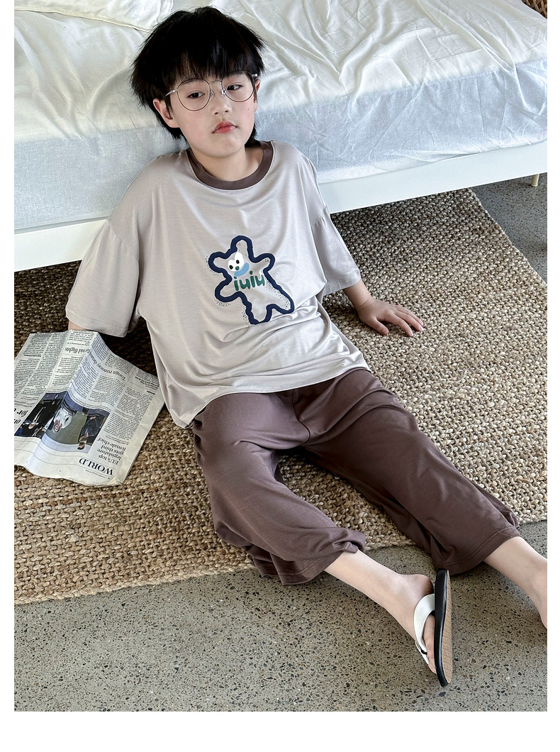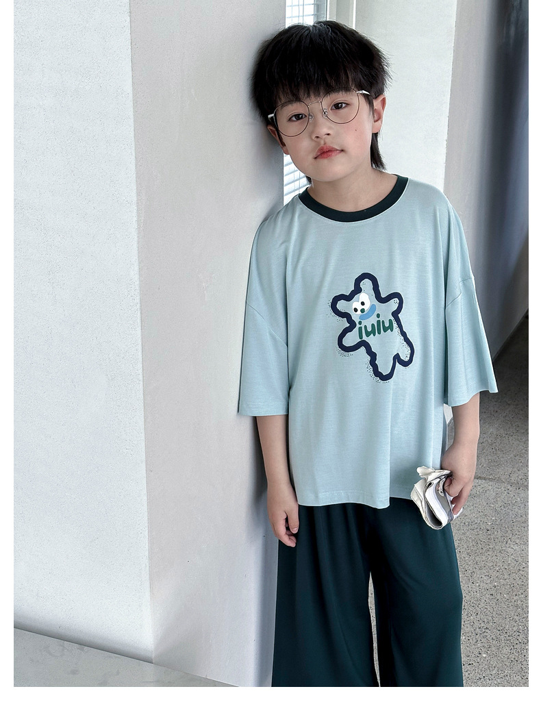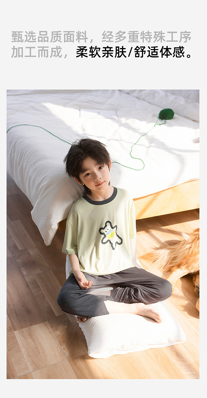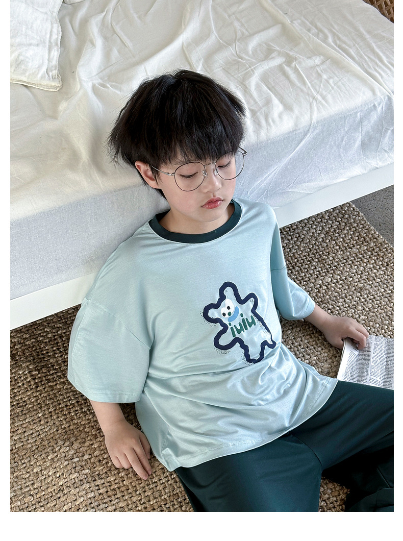 팬더 Yuanyuan 2025 새로운 모달 어린이 파자마 여름 옷 소년 집 옷 세트 여름 에어컨 옷