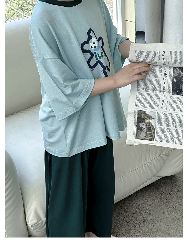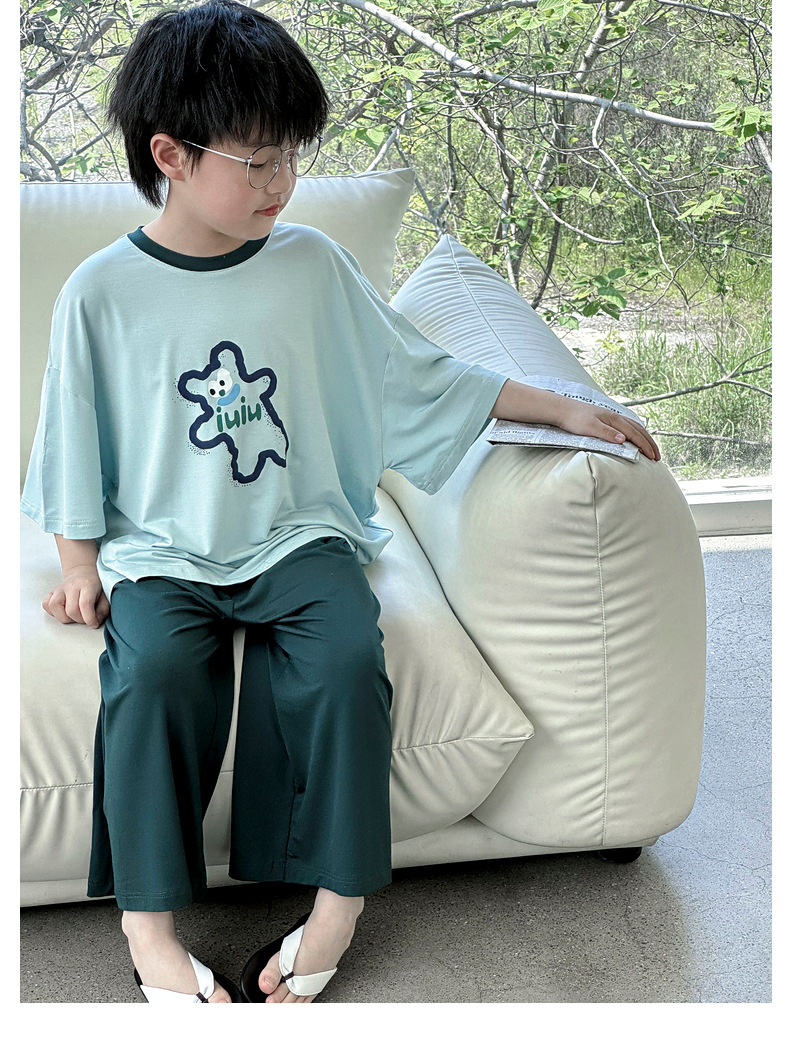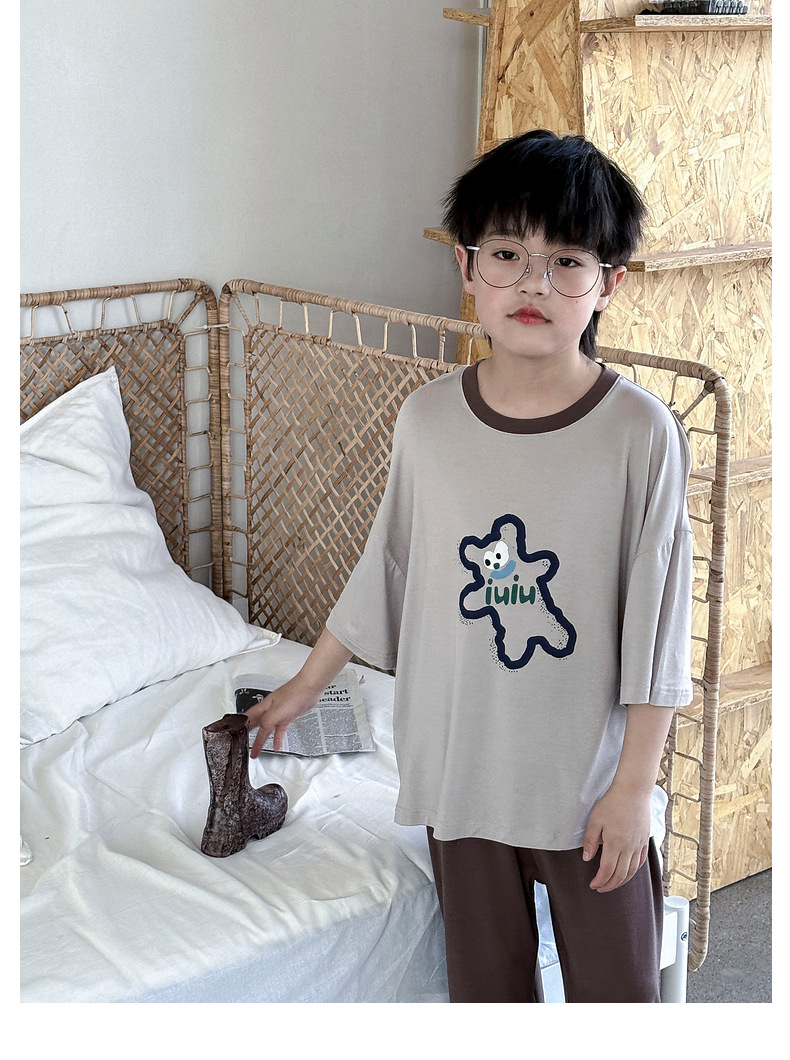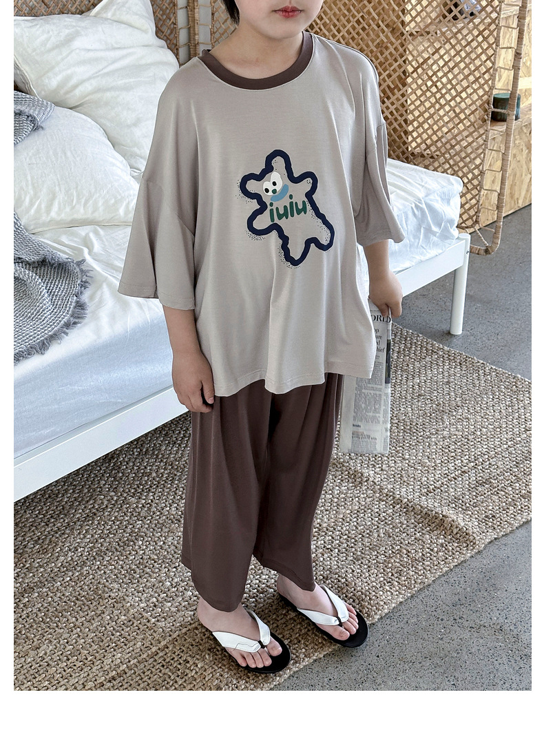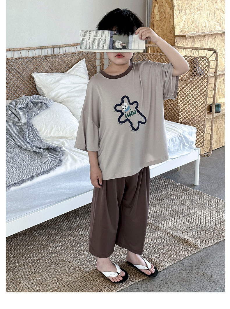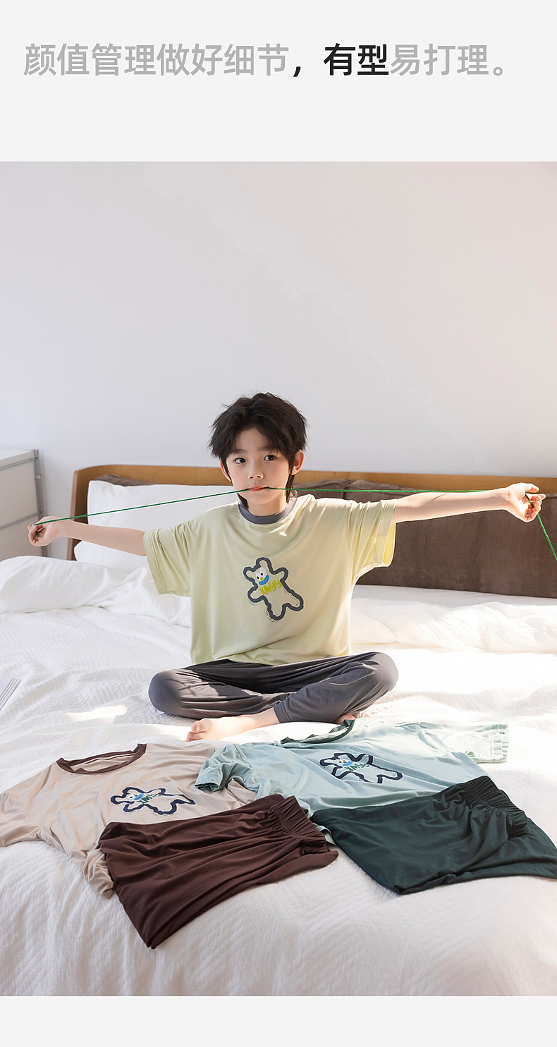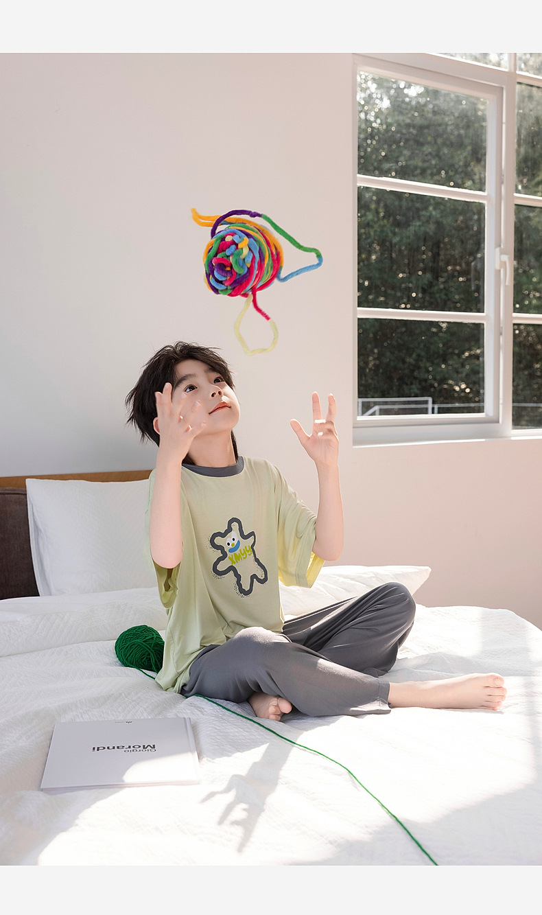 팬더 Yuanyuan 2025 새로운 모달 어린이 파자마 여름 옷 소년 집 옷 세트 여름 에어컨 옷