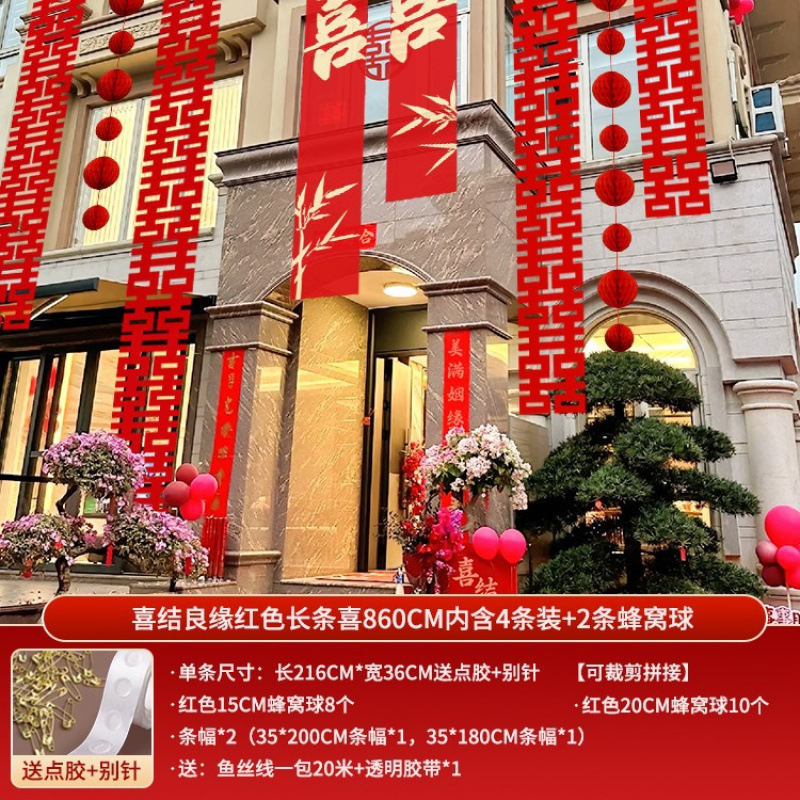 • [롱조이+배너] 4팩 총 8.6m개 롱조이 + 웨딩배너 2개 + 벌집볼 2개