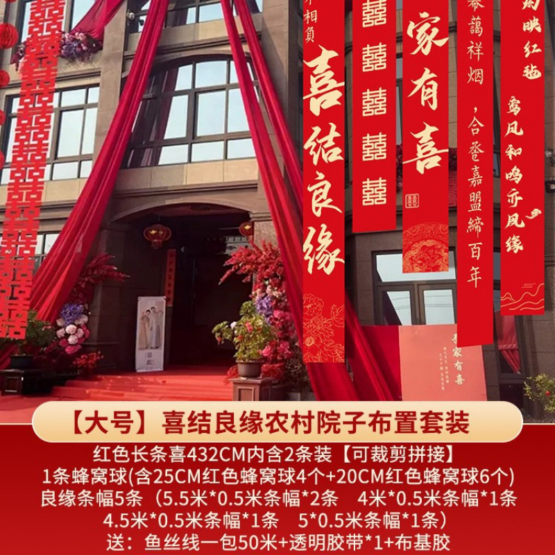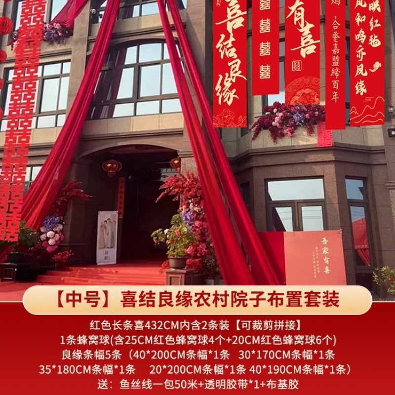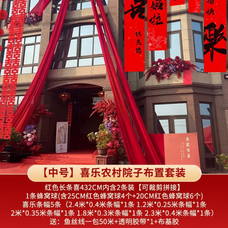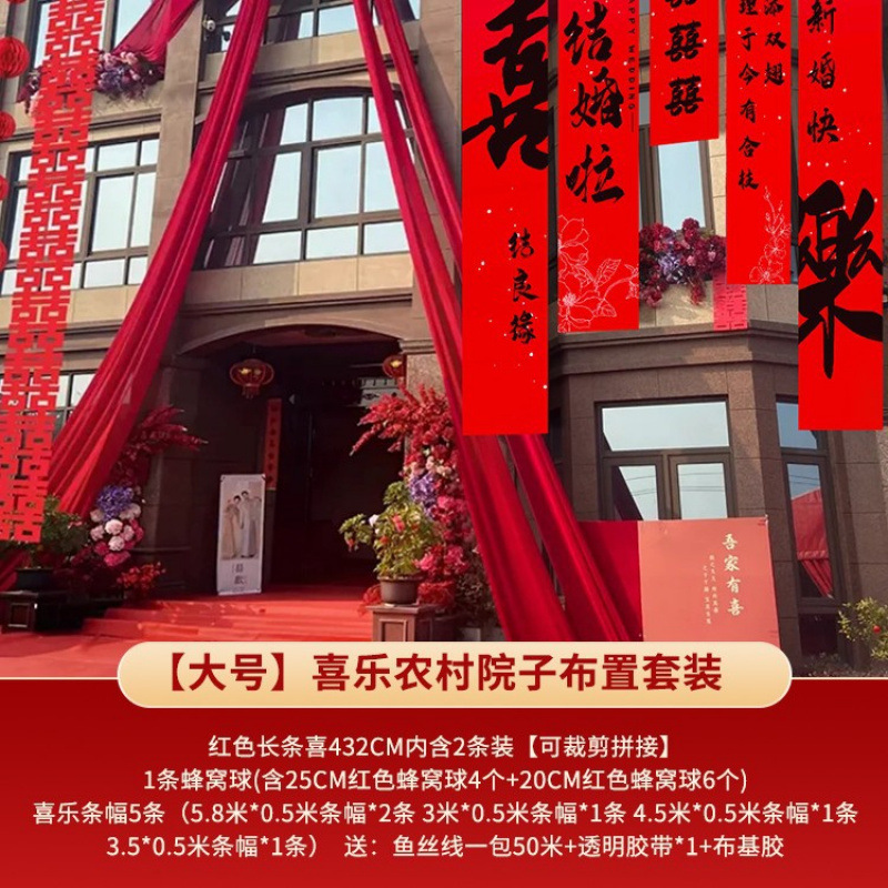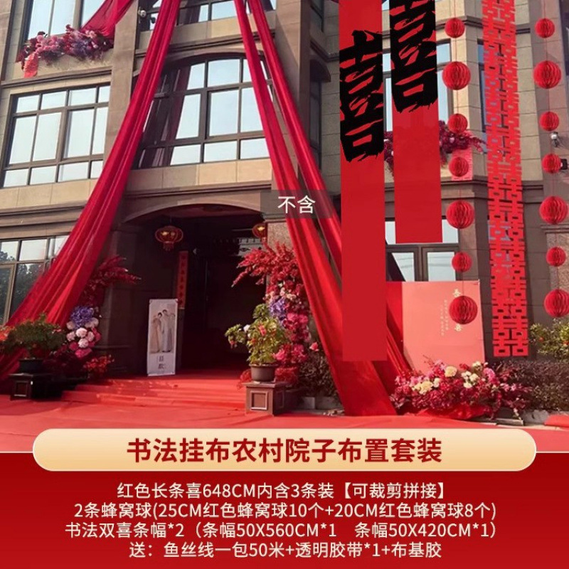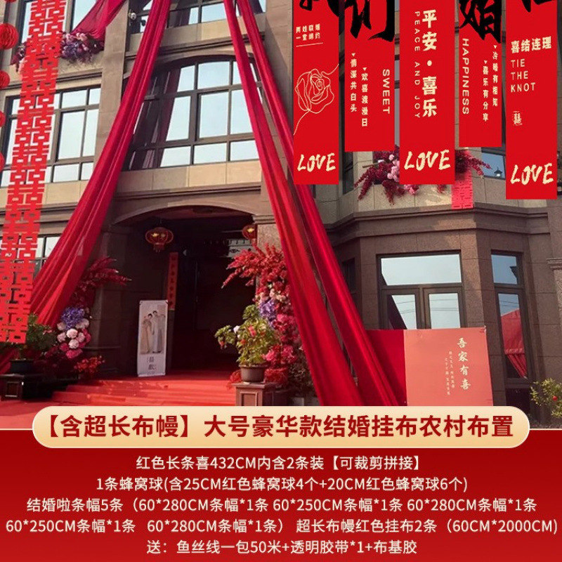 웨딩 배너 룸 농촌 안뜰 웨딩 장식 야외 야외 안뜰 발코니 꽃 배열 장식 매달려 천
