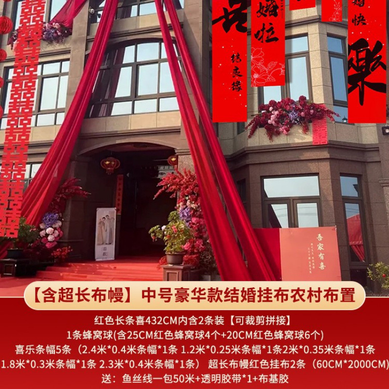 • [매우 긴 커튼 포함] 중형 럭셔리 웨딩 매달린 천 마당 장식