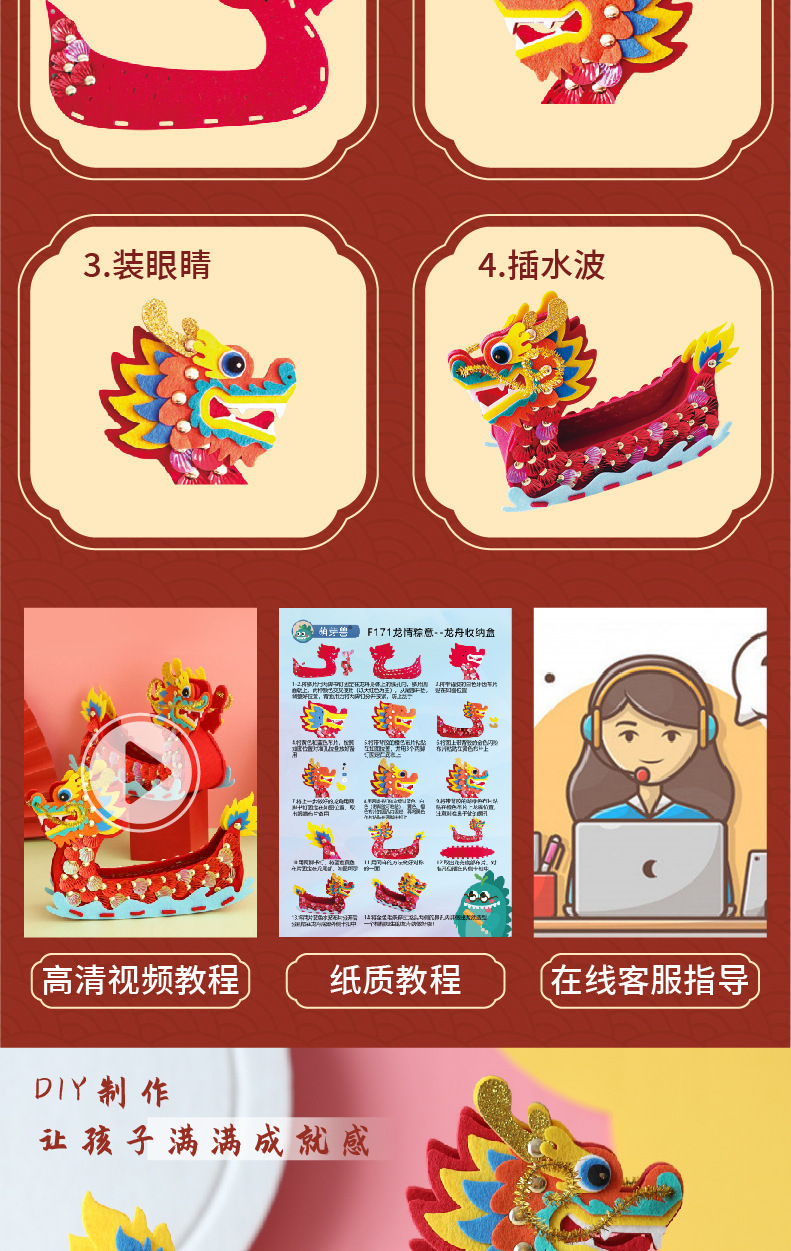 드래곤 보트 축제 드래곤 보트 봄 타이드 DIY 드래곤 마스코트 보관 상자 어린이 수제 장난감 선물 장식품 한국 스타일