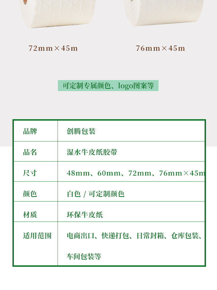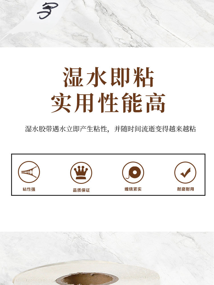 • 흰색 젖은 물 강화 크래프트 종이 테이프, 4.8cm*50m