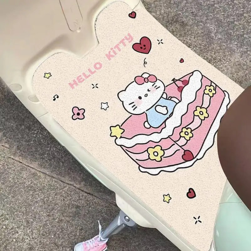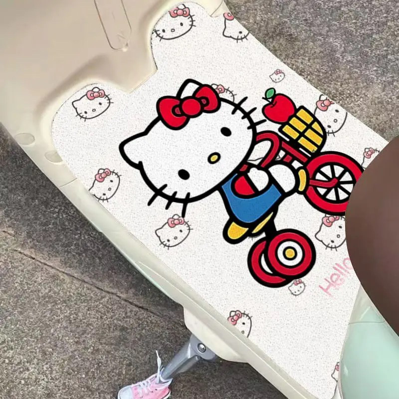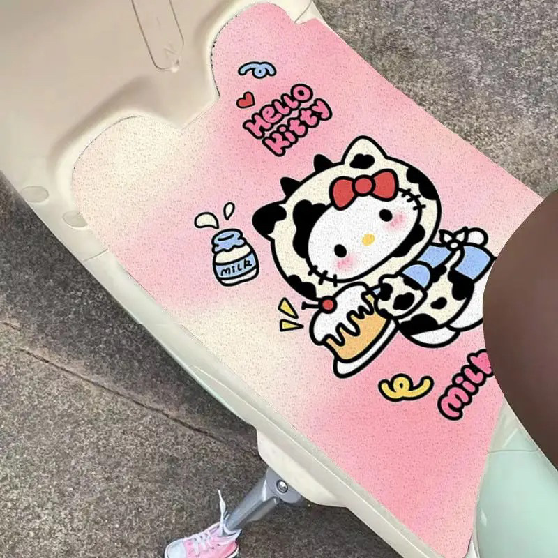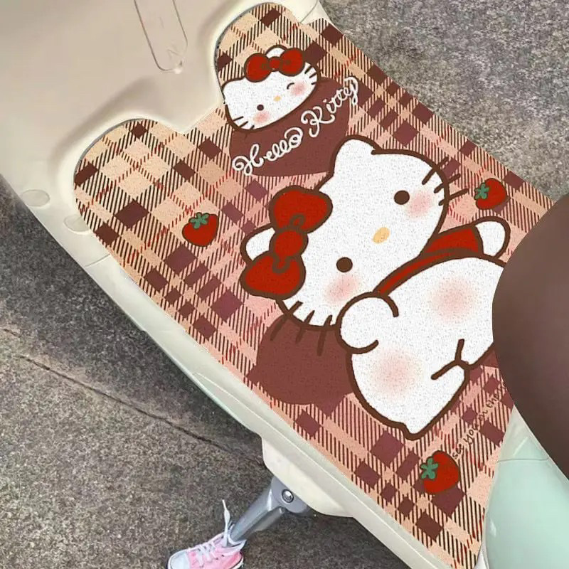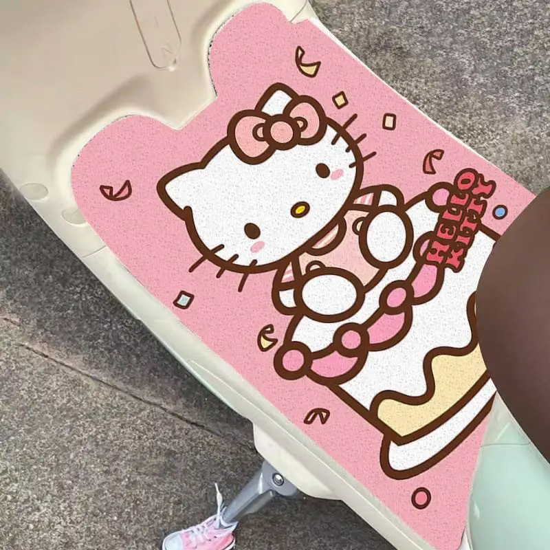 만화 전기 자동차 발 매트 실크 링 방수 두꺼운 오토바이 배터리 자동차 헬로 키티 유니버설 페달 매트 라이트 럭셔리