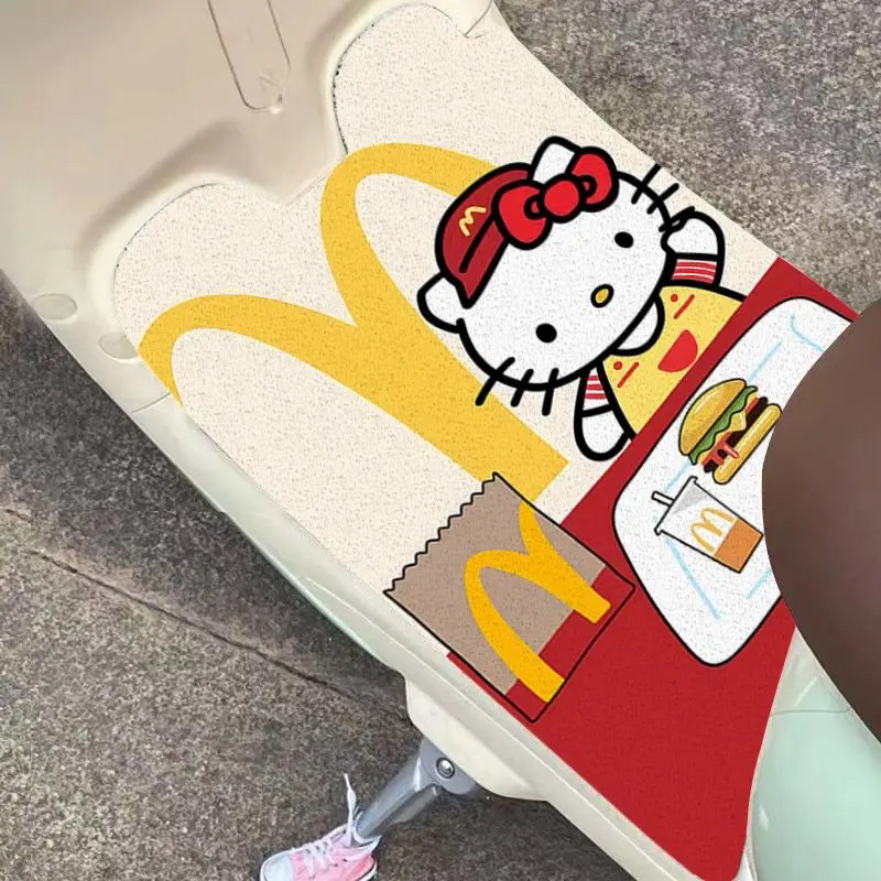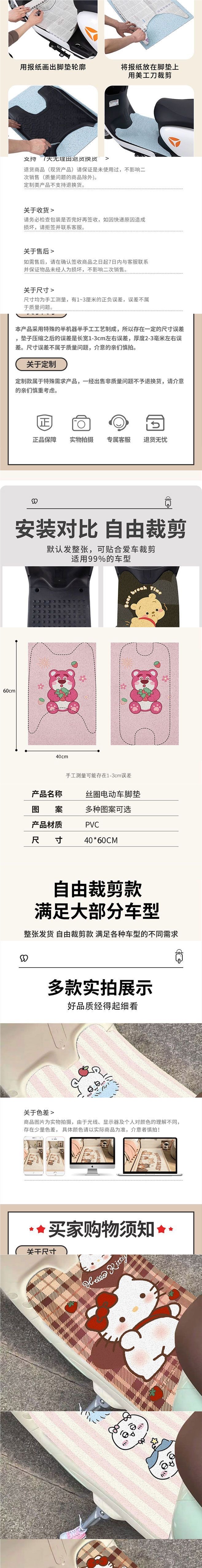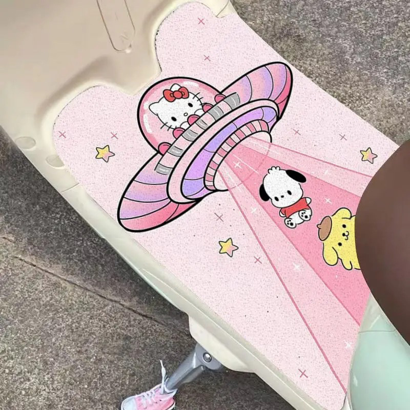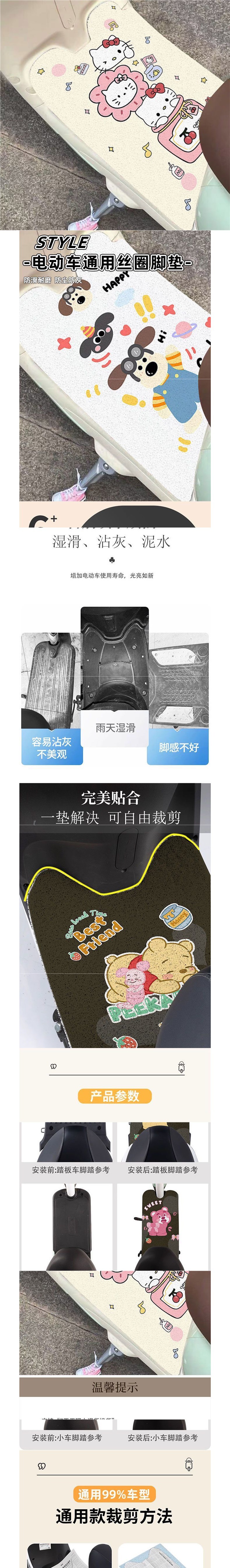 만화 전기 자동차 발 매트 실크 링 방수 두꺼운 오토바이 배터리 자동차 헬로 키티 유니버설 페달 매트 라이트 럭셔리