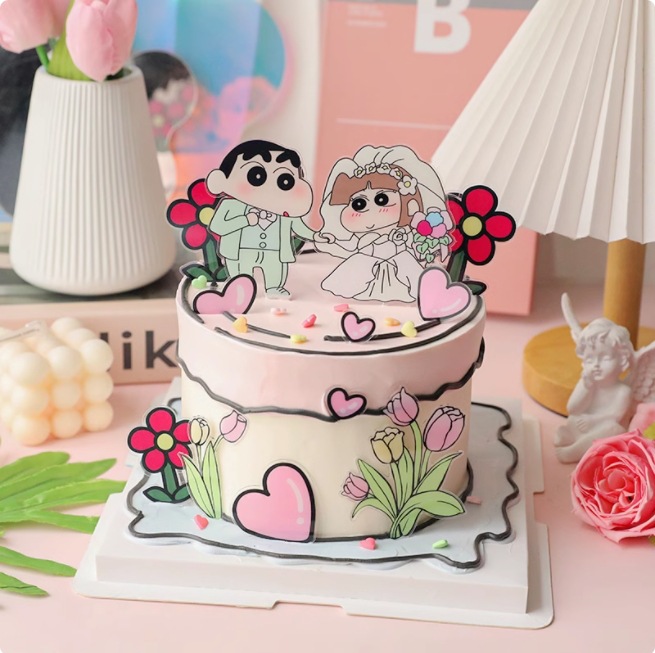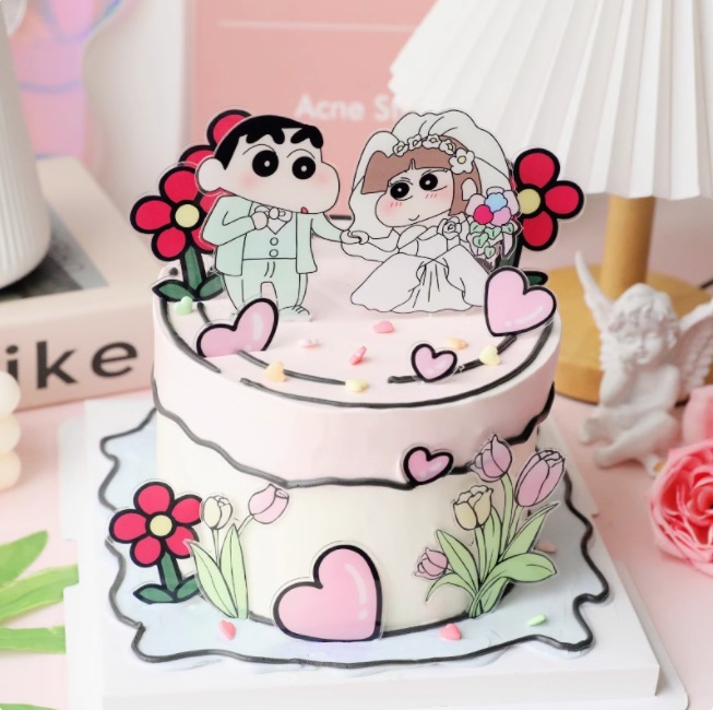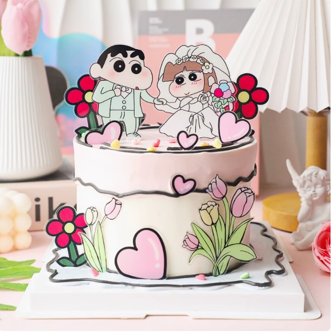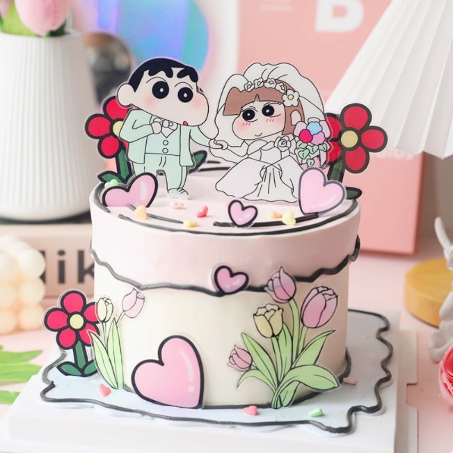 인터넷 축하 크레용 작은 새 케이크 장식 카드 제안 웨딩 연회 테마 디저트 테이블 레이아웃 베이킹 원피스스토어 가기