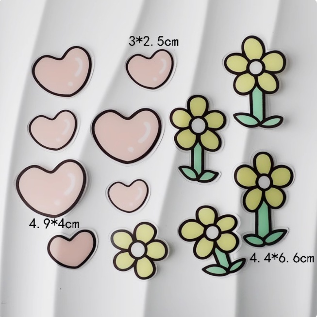 • 아크릴 핑크 하트 노란색 꽃 12pc1 세트