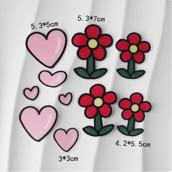 • 아크릴 핑크 하트 붉은 꽃 10pc1 세트