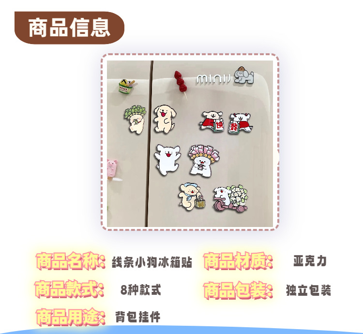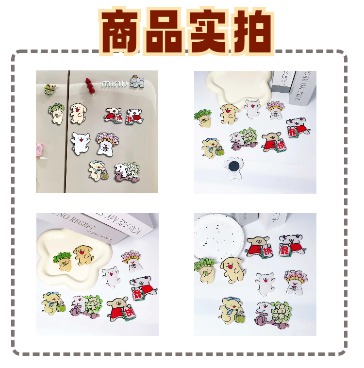 새로운 라인 개 냉장고 스티커 아크릴 만화 개 성격 부드러운 자기 흡입 이동식 장식 냉장고 스티커스토어 가기
