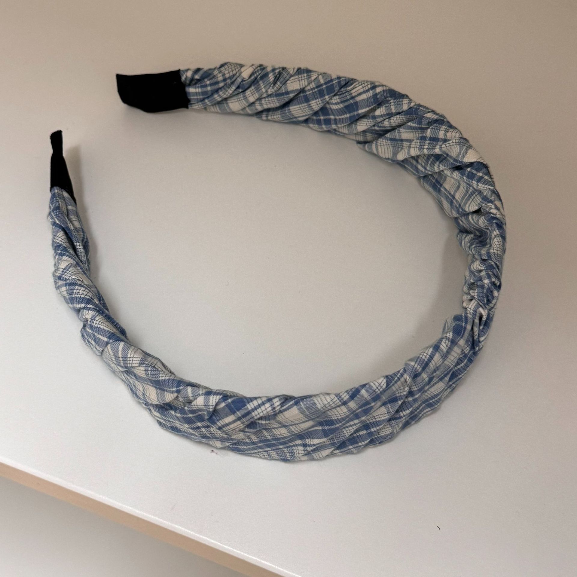 • 라이트 블루 체크 무늬 스퀘어 스카프