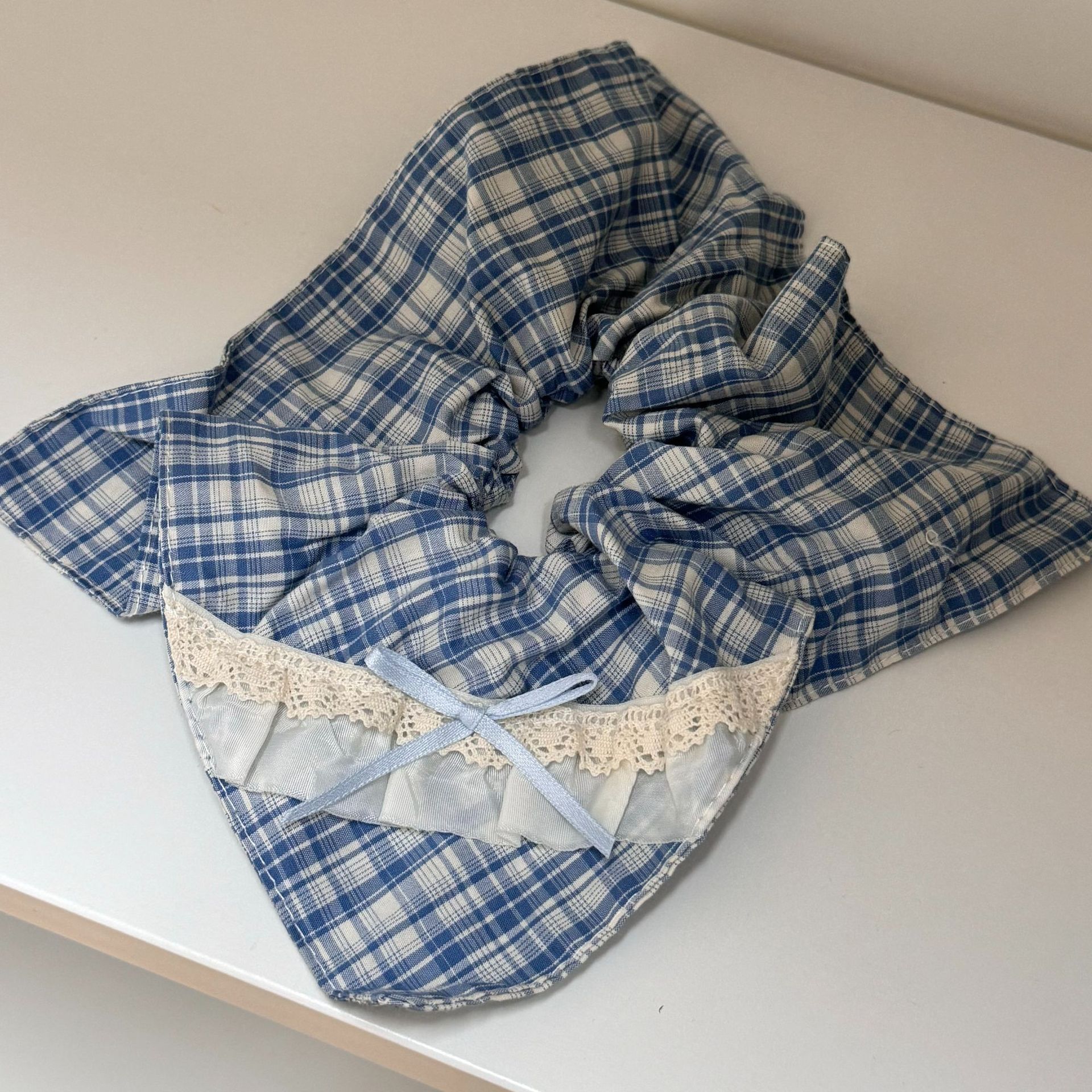블루베리톤 컬리지 스타일 레이스 리본 머리끈, 다용도 볼 머리끈, 머리끈
