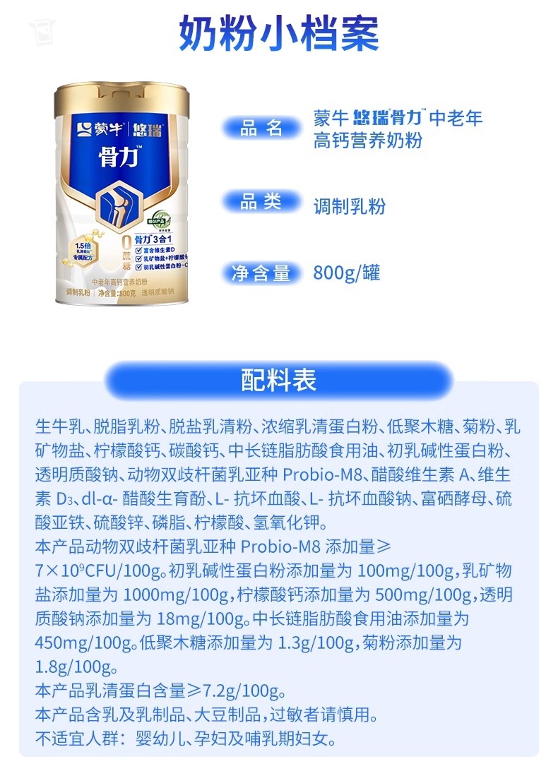 노인 성인 사카린 무료 정품 공식 플래그십 스토어 공식 웹 사이트를위한 Mengniu 중년 분유 고 칼슘 우유