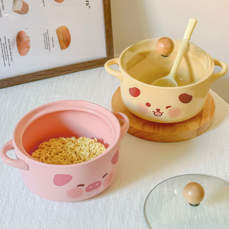 Ins 스타일 귀여운 세라믹 인스턴트 국수 그릇 뚜껑 바이노럴 달팽이 가루 그릇 소녀 생일 선물 여자 친구 동반 선물스토어 가기