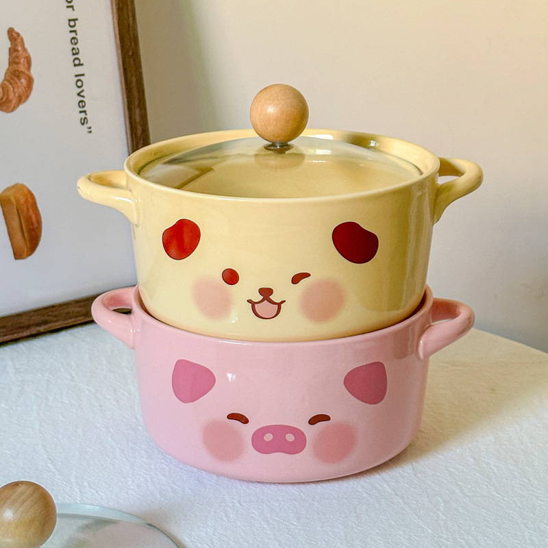 • 쌍귀국수그릇-핑크돼지(뚜껑포함)