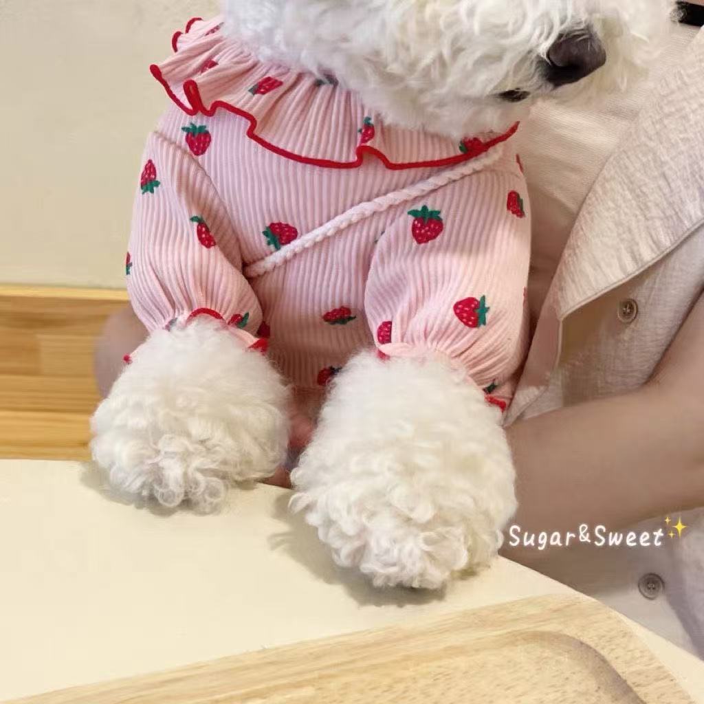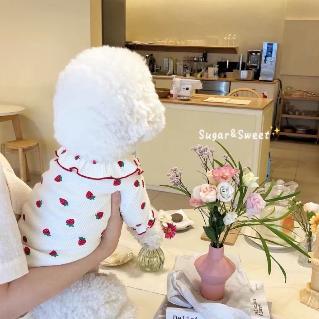 애완 동물 딸기베이스 셔츠 Teddy Bixiong VIP 작은 개 옷 새끼 고양이 봄과 가을 새 의류스토어 가기