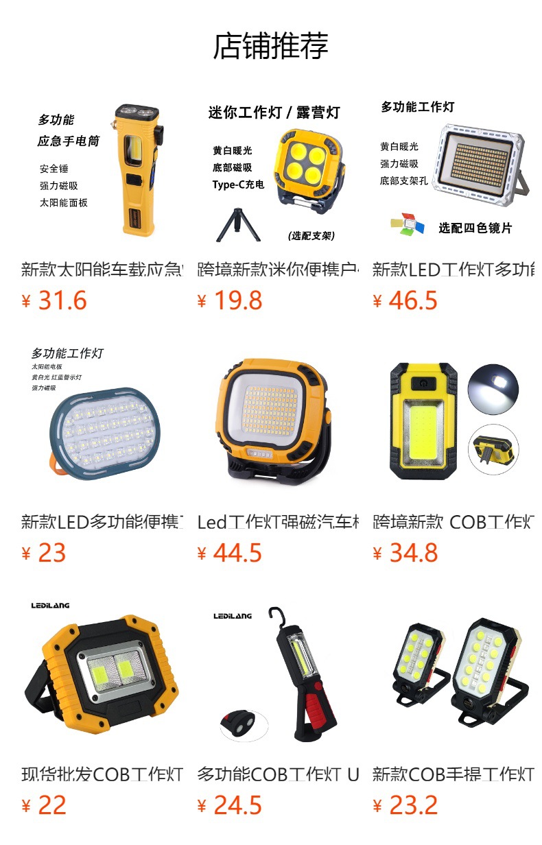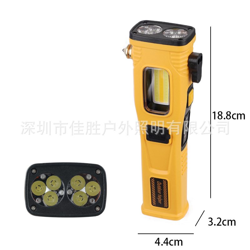侧灯,白光-黄光-黄白光-爆闪破窗锤、割刀、强磁、电量显示、太阳能充电USB输出、Type-C接口、伸缩调焦