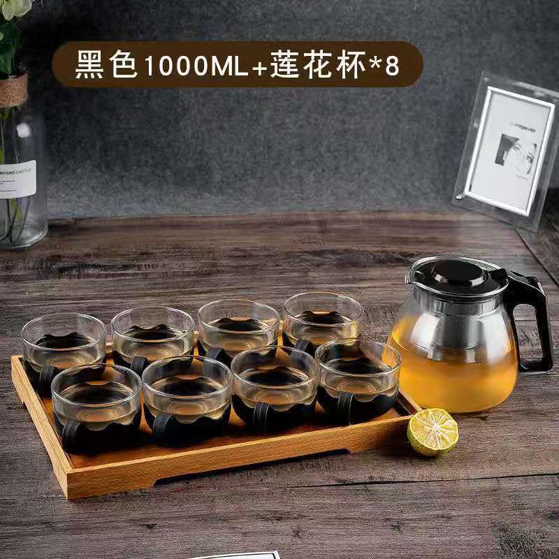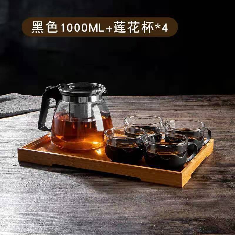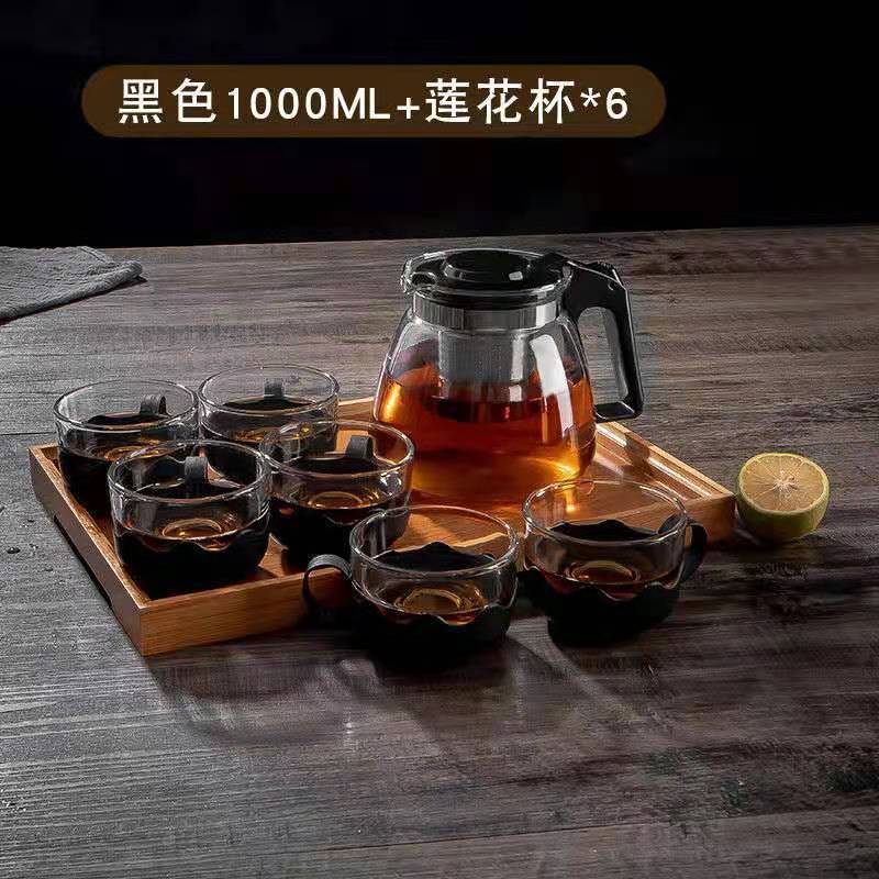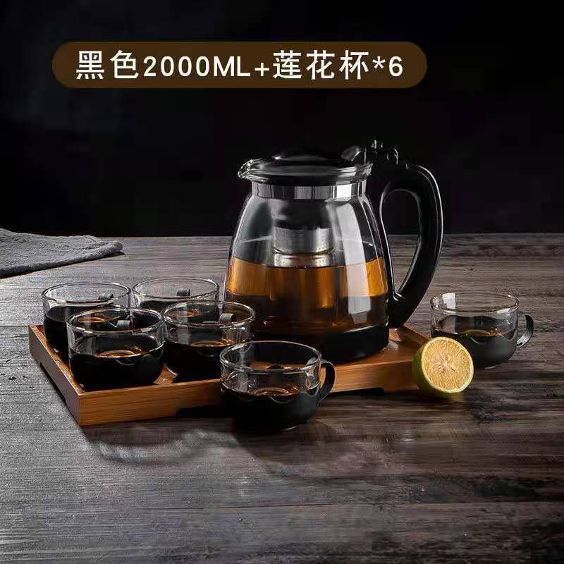 가정용 대용량 유리 주전자 세트 티 컵 스트레인 고온 저항하는 주전자 차 주전자 차 세트 차