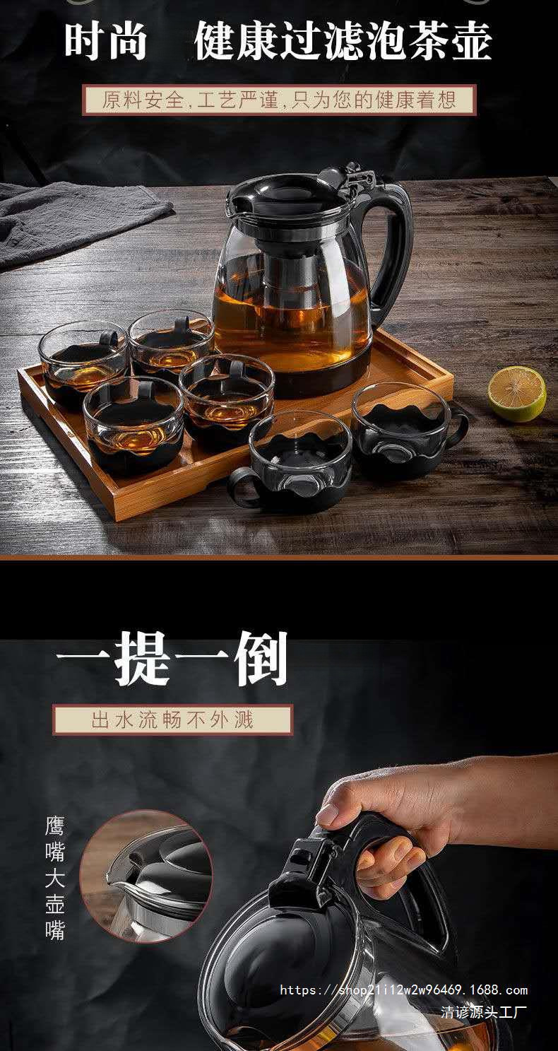 가정용 대용량 유리 주전자 세트 티 컵 스트레인 고온 저항하는 주전자 차 주전자 차 세트 차스토어 가기