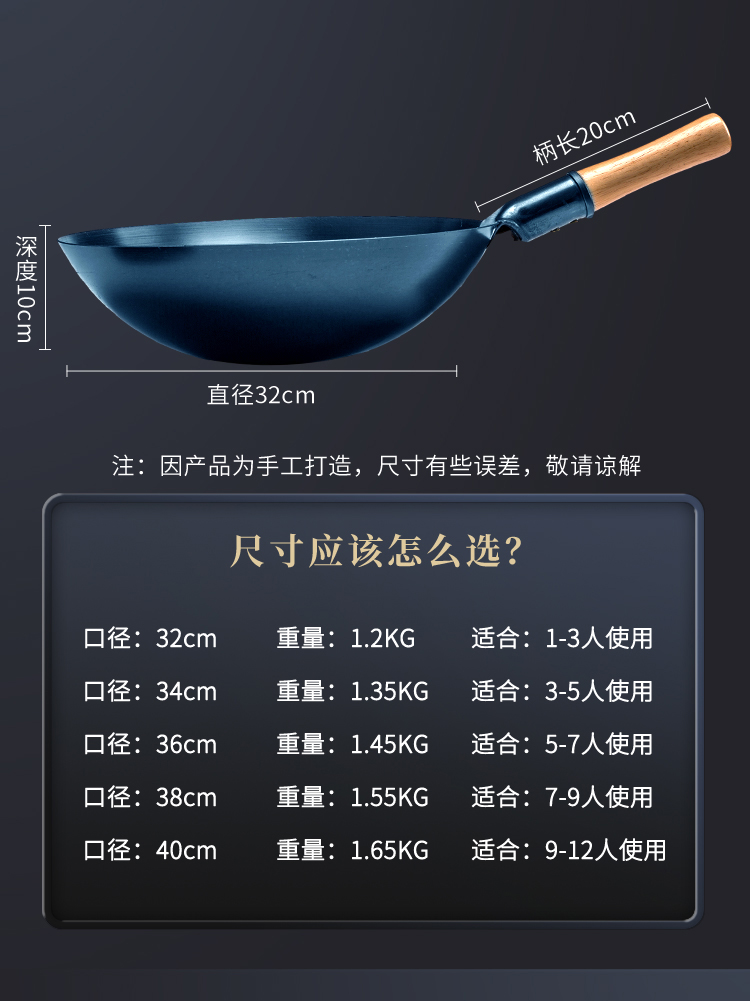 가정용 철창 요리 순수 철 경량 초경량 보일러 스페셜 워크 가스 스토브 셰프를위한 워크 논스틱 워크