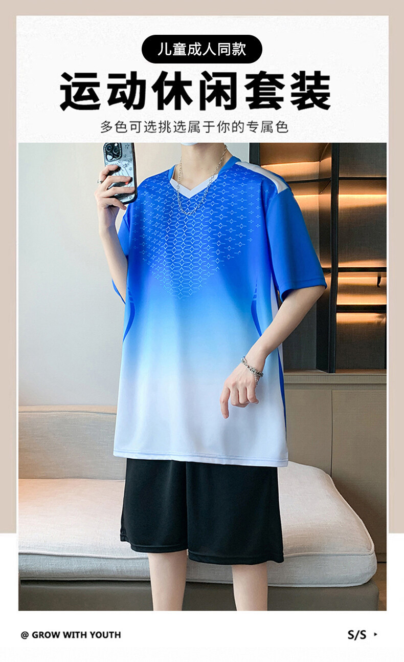 2025 신입 남녀 청소년 스포츠 세트 급건조 저지 어린이 V넥 반팔 반바지 대회 훈련복스토어 가기