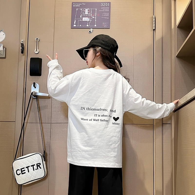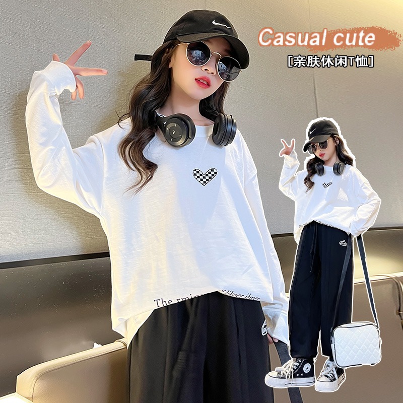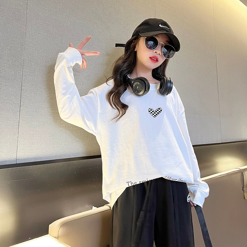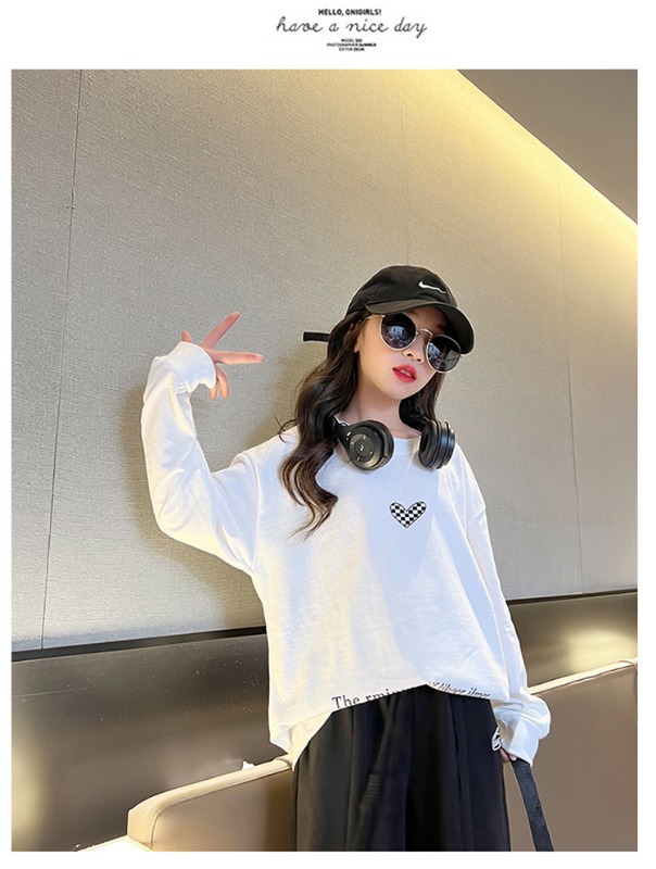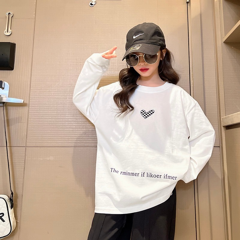 소녀 티셔츠 봄과 가을 2025 새로운 서양식 어린이 봄 원피스 기지 셔츠 큰 어린이 어린 소녀의 긴 소매 느슨한 탑스토어 가기