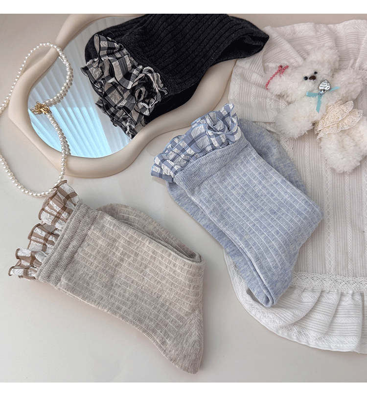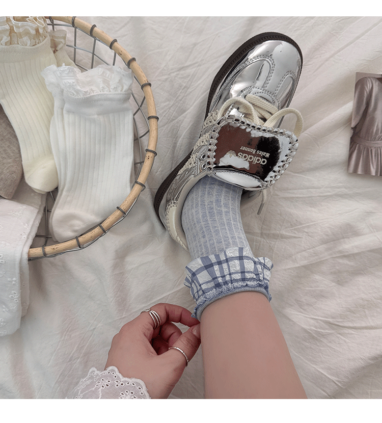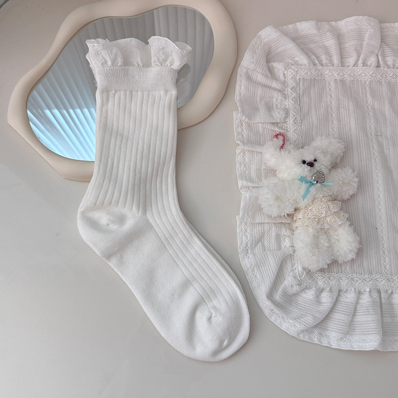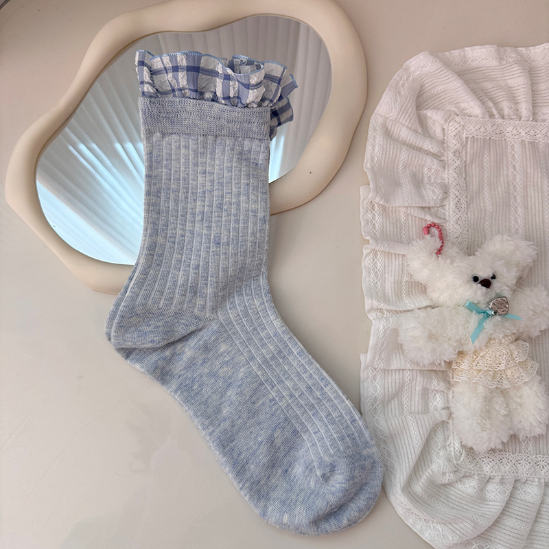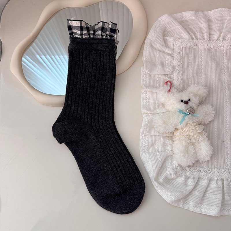 한국식 격자 무늬 레이스 뼈없는 양말 봄 여름 여성 블로거를위한 새로운 플랜지 면화 양말스토어 가기
