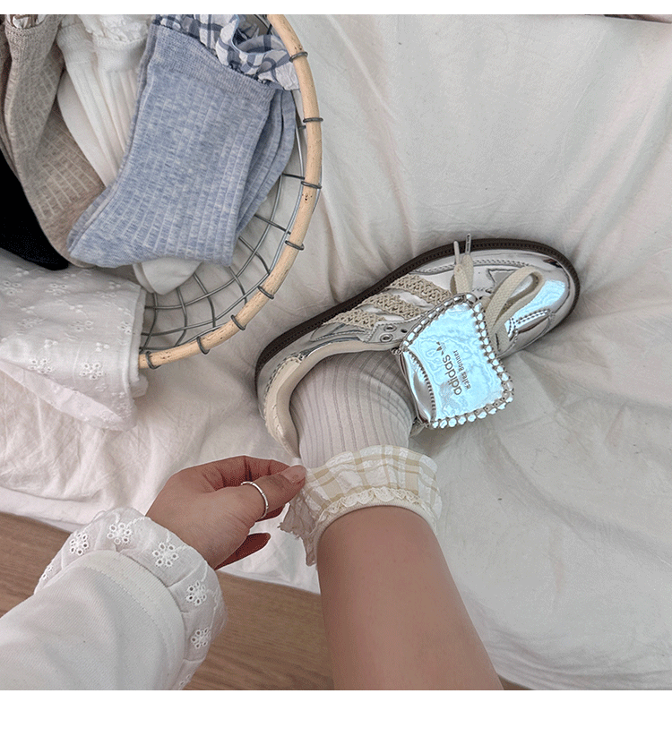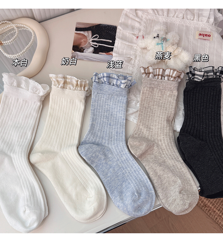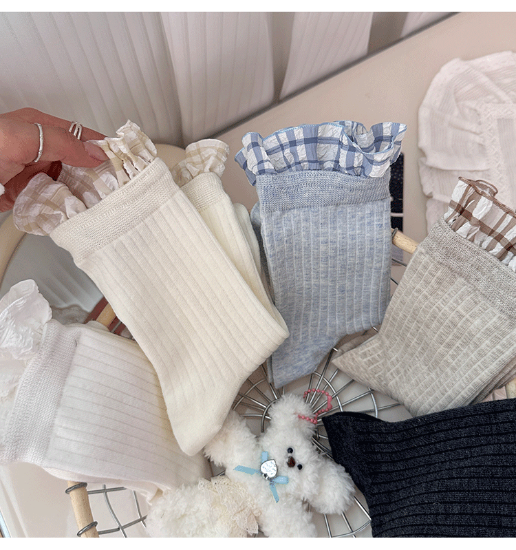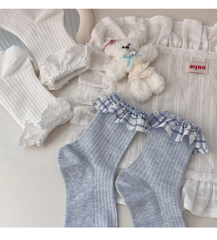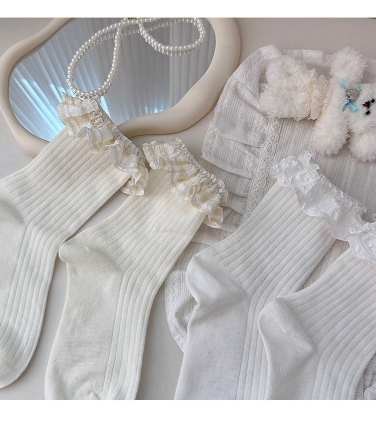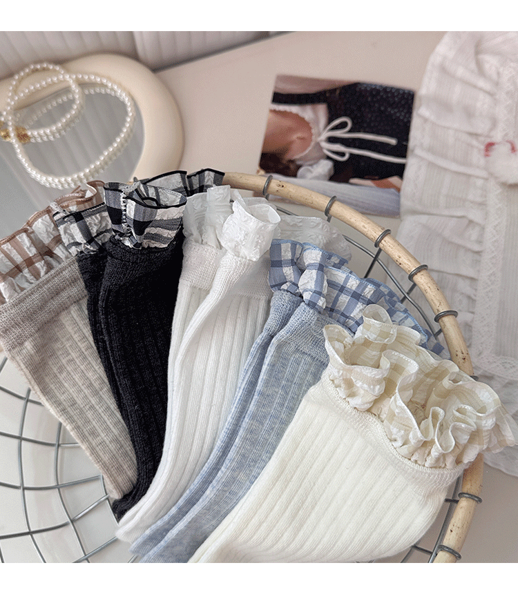 한국식 격자 무늬 레이스 뼈없는 양말 봄 여름 여성 블로거를위한 새로운 플랜지 면화 양말스토어 가기