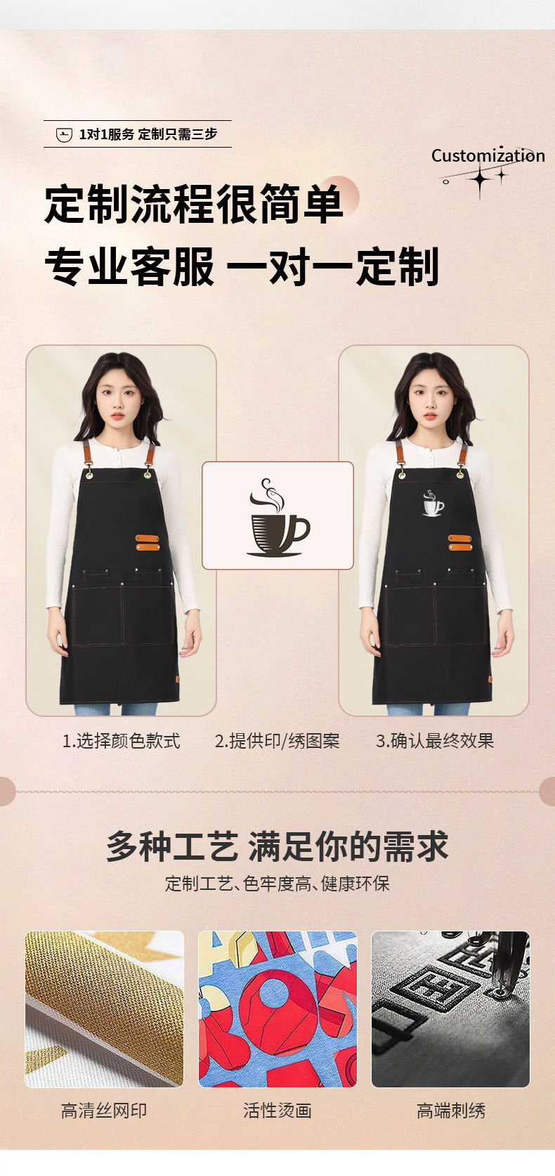 캔버스 앞치마 방수 두꺼운 케이터링 과일 및 야채 슈퍼마켓 우유 차 커피 숍 웨이터 광고 작업 허리 인쇄