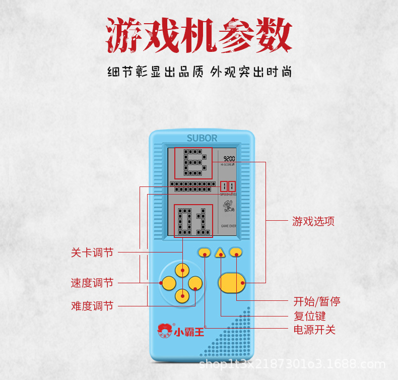 작은 오버로드 HD 대형 스크린 테트리스 휴대용 게임 기계 어린이 장난감 전자 게임 기계 뱀스토어 가기