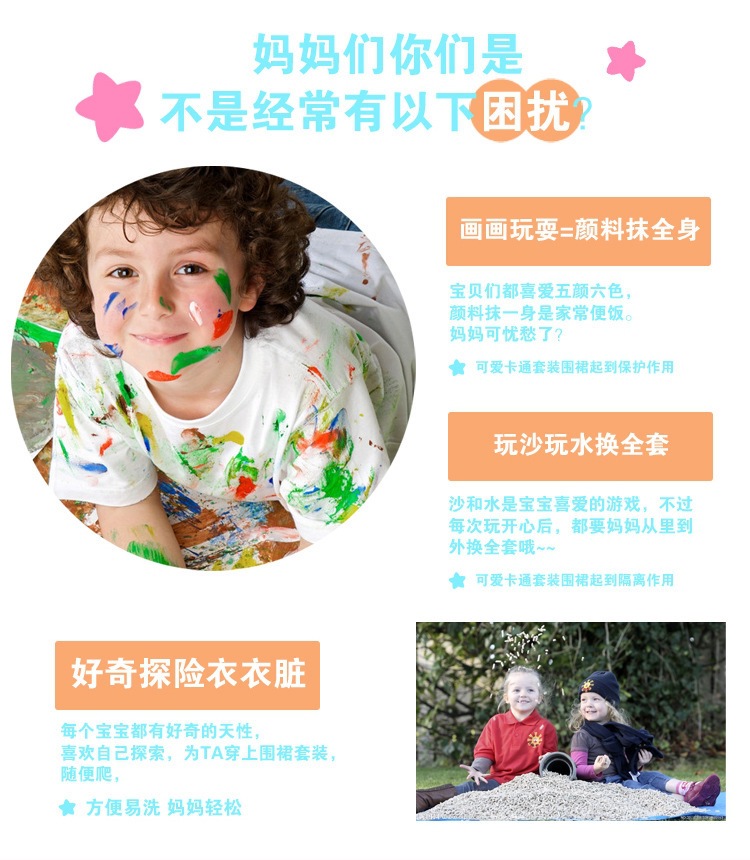 도매 예술 학생 만화 어린이 작업복 앞치마 소매 어린이 그리기 놀이 방오 세트스토어 가기