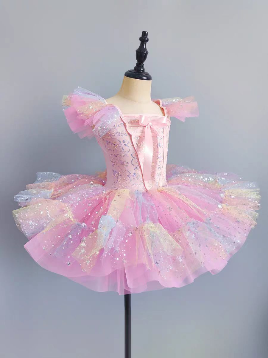 어린이 어린이 투투 원피스 공연 의류 유치원 조각 댄스 귀여운 공주 소녀의 베일 원피스 공연 의류