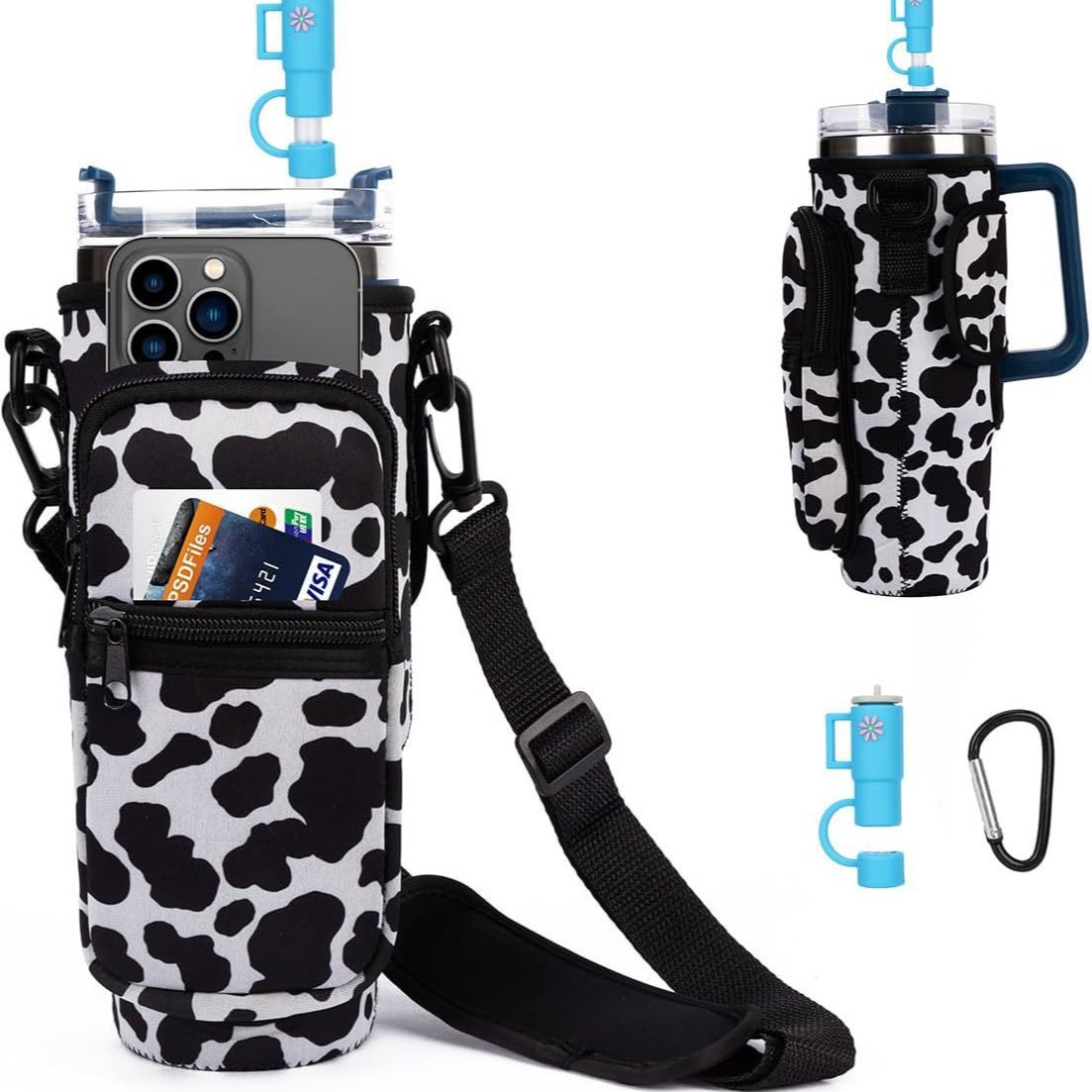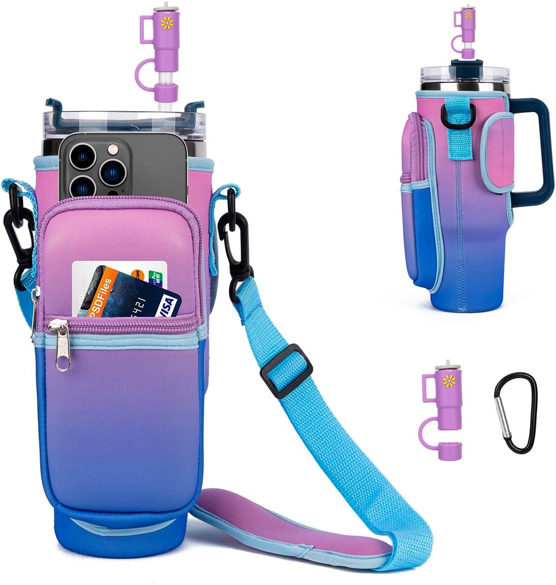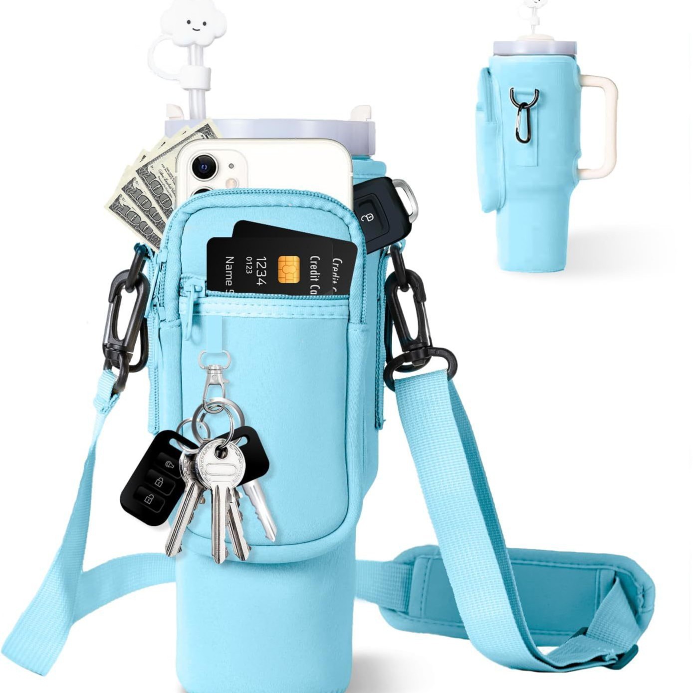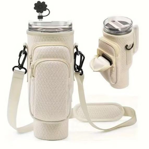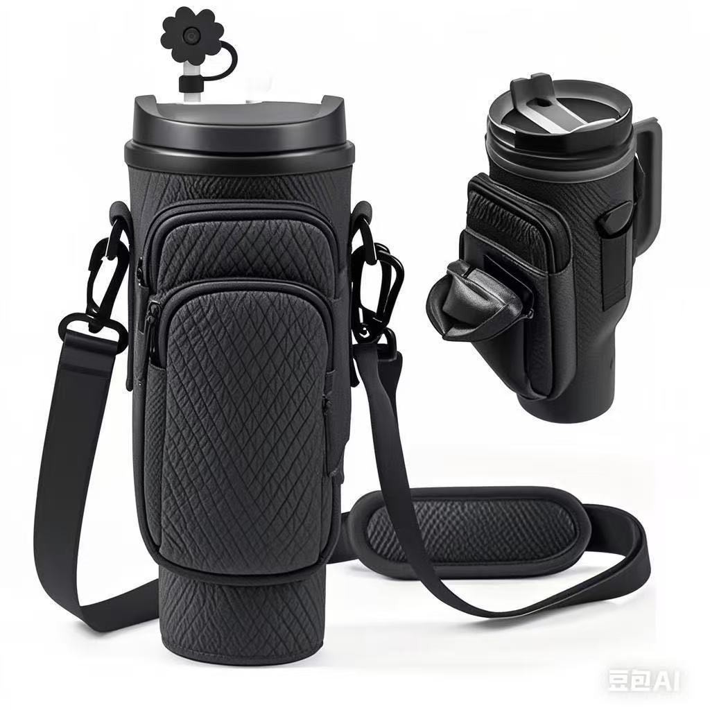야외 국경 간 스포츠 피트니스 주전자 세트 40oz 얼음 깡패 핸들 컵 세트 다이빙 소재 조절 어깨 끈 물병 가방