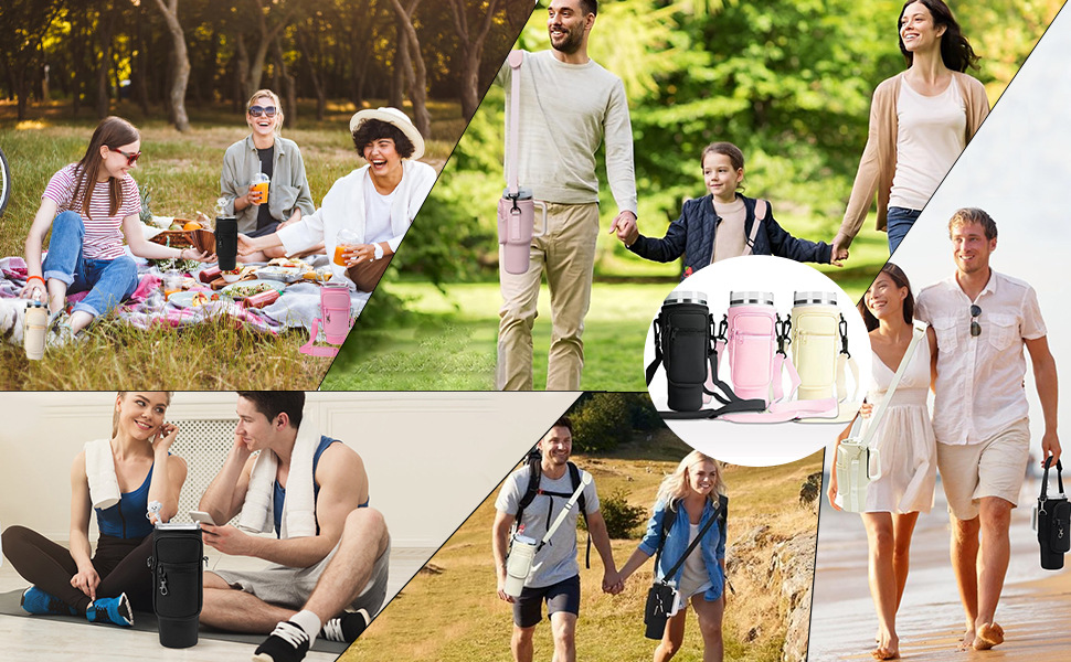 야외 국경 간 스포츠 피트니스 주전자 세트 40oz 얼음 깡패 핸들 컵 세트 다이빙 소재 조절 어깨 끈 물병 가방스토어 가기
