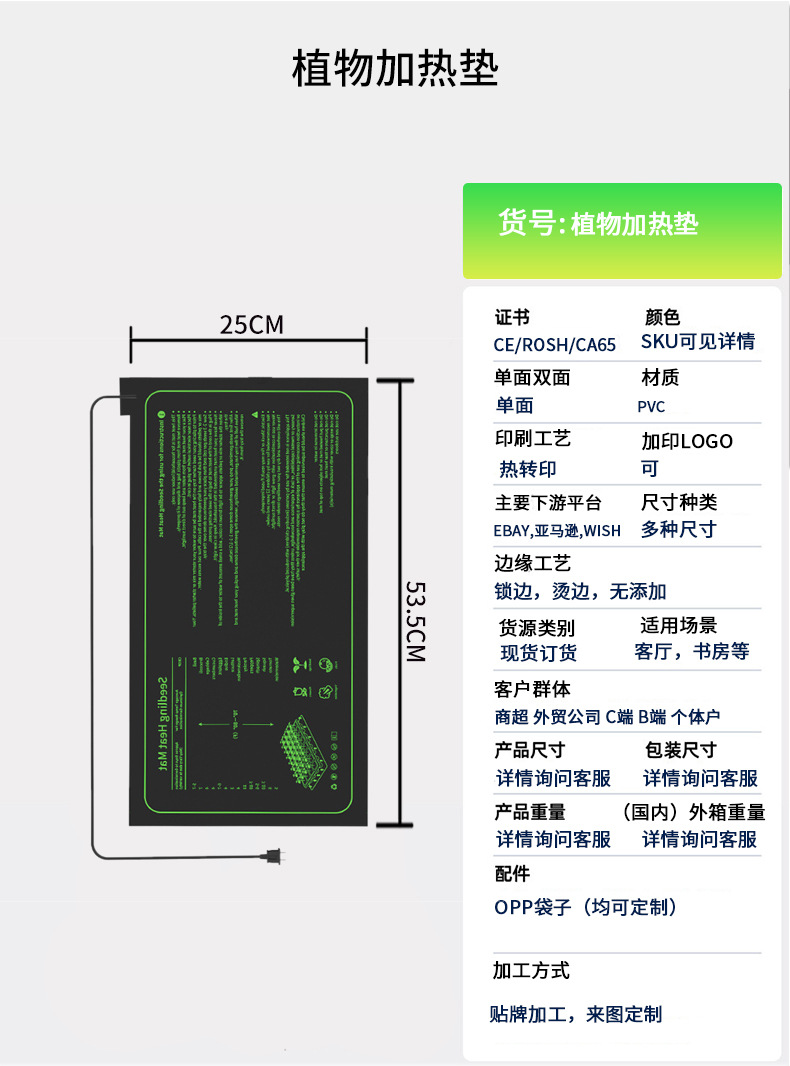 식물 난방 패드 꽃과 식물 묘목 패드 재배 전기 담요 방수 따뜻한 겨울 실내 녹색 식물 생선 탱크 파충류